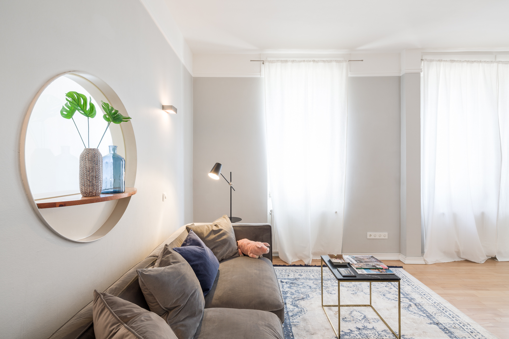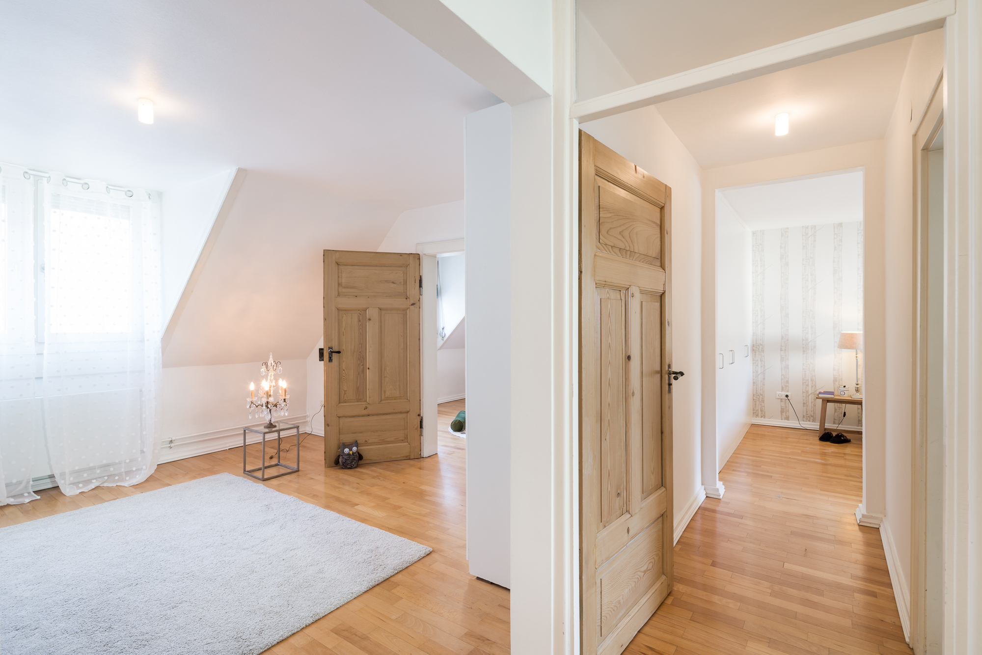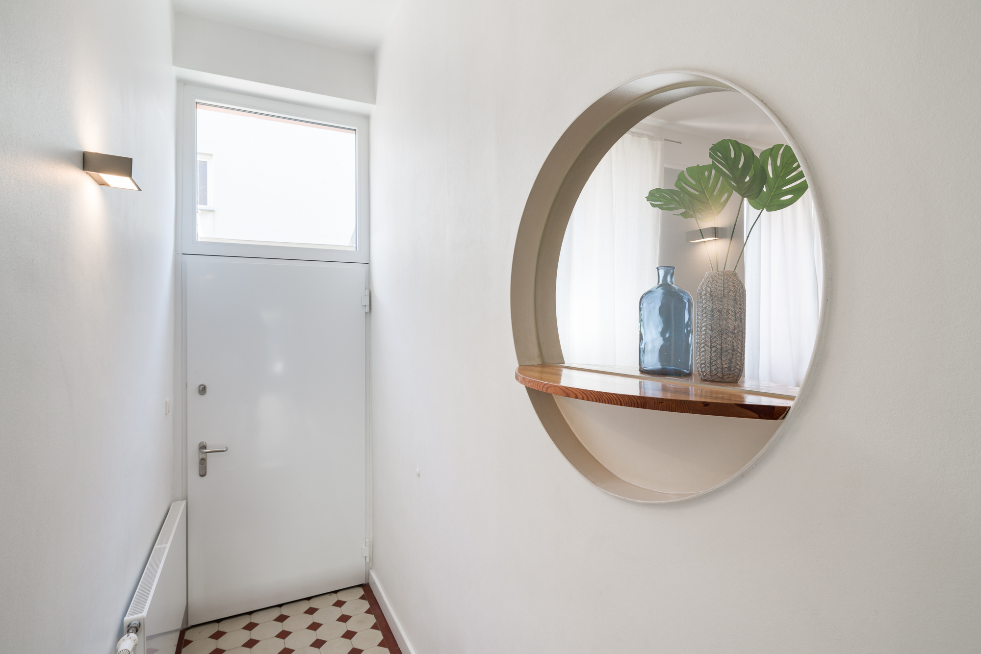 – Bodenbeläge: Echtholz-Parkett Eiche, Terrazzo und Fliesen