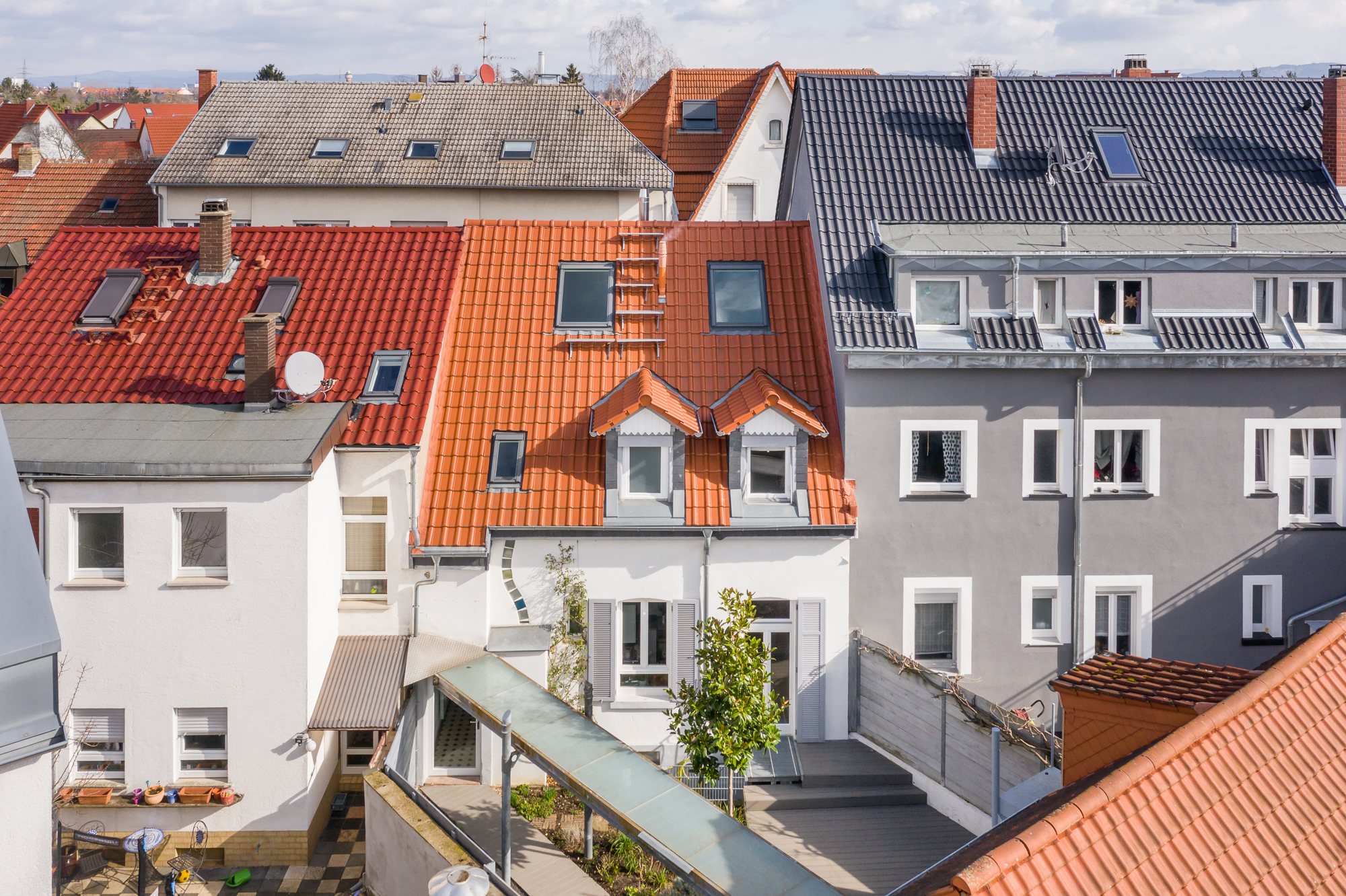 In gesuchter und ruhiger Wohnlage von Mannheim-Feudenheim präsentieren wir Ihnen ein für Familien prädestiniertes und stilvoll modernisiertes Reihenmittelhaus mit idyllischem Innenhof inkl. Hinterhaus zum Sofortbezug. Das top gepflegte Einfamilienhaus, mit einer Gesamtwohnfläche von ca. 153 qm, wurde 1908 gebaut und befindet sich auf einem 178 qm großen nach Südwest ausgerichteten Areal. Das besonders charmante Objekt wurde über die Jahre stets bestens Instand gehalten und verfügt über 3 Wohnebenen (EG, OG, DG) mit insgesamt 4,5 Zimmern, hiervon 3 mögliche Schlafzimmer, 1 Tageslichtbad und 1 Gäste-WC. Zusätzlich stehen Ihnen im begrünten Hofgarten nebst großer Sonnenterrasse ein hübsches Hinterhaus mit ausgebautem Zimmer (ca. 14 qm) und ausbaufähigen Dachboden zur Verfügung. Zuletzt im Jahr 2019 wurden aufwendige Renovierungsarbeiten u.a. Gäste-WC, Aufarbeitung der Holztreppe sowie Kellerräume etc. durchgeführt. Des Weiteren besteht die Möglichkeit durch einen Anbau zwischen Haupt- und Nebengebäude ca. 35 qm Wohnfläche zusätzlich zu realisieren, dies ist baurechtlich bereits genehmigt. Besonders hervorzuheben sind vor allem die historischen Altbau-Details, wie der original erhaltene Terrazzoboden, das Holztreppenhaus, die Holzböden, die hohen Decken im EG sowie der gekonnt entworfene Innenhof der einer Wohlfühloase mit viel Privatsphäre gleicht. Abgerundet wird dieses seltene Kaufangebot durch einen Carport direkt neben dem Hinterhaus mit Hofzufahrt über die Nachbarstraße. Weitere Details erfahren Sie gerne auf persönliche Anfrage!