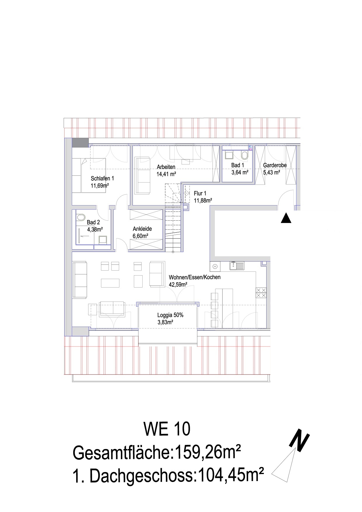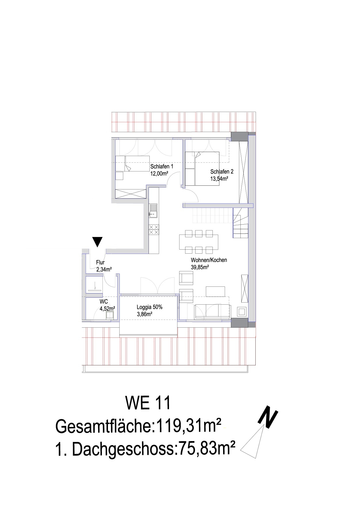 Wir präsentieren Ihnen exklusiv diese komfortable Neubau-DG-Maisonettewohnung mit Sonnenloggia im 2. Obergeschoss plus Dachgeschoss. Insgesamt befinden sich in diesem projektierten Mehrfamilienhaus mit Lift und Tiefgarage nur sechs Wohneinheiten.