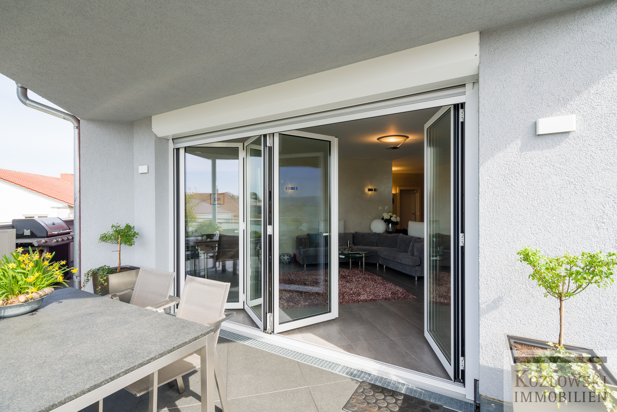 • Faltelement-Glasfront zur Dachterrasse