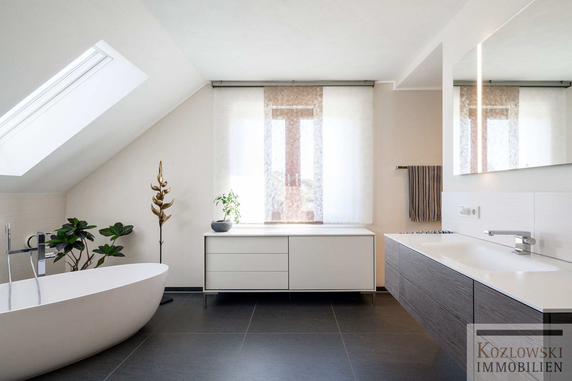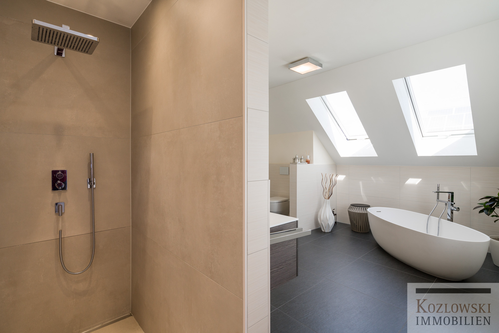 – Tageslichtbad u.a. mit freistehender Badewanne, bodentiefer Dusche und WC