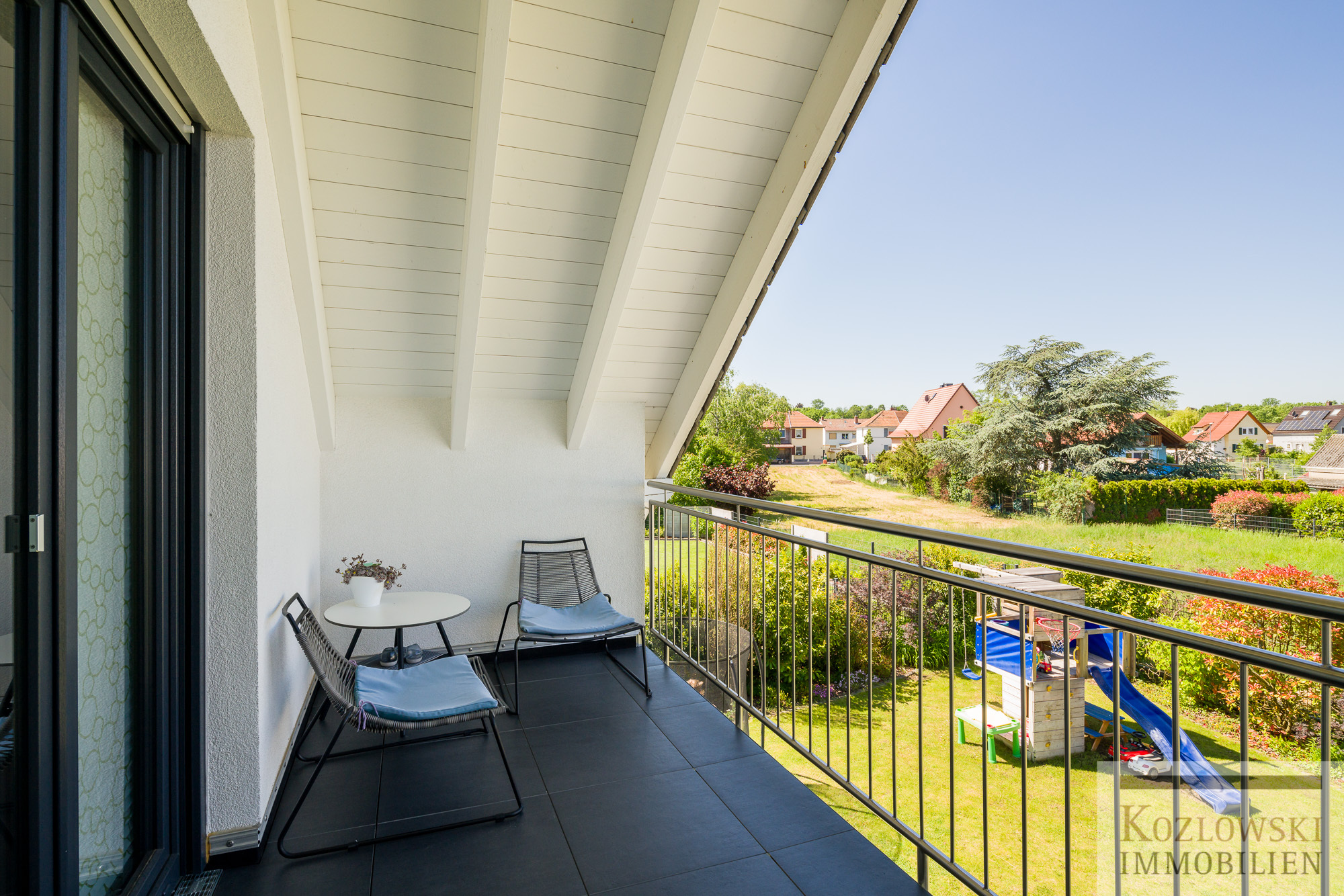 – 1 große Terrasse im EG, 1 große Loggia im DG jeweils mit West-Ausrichtung