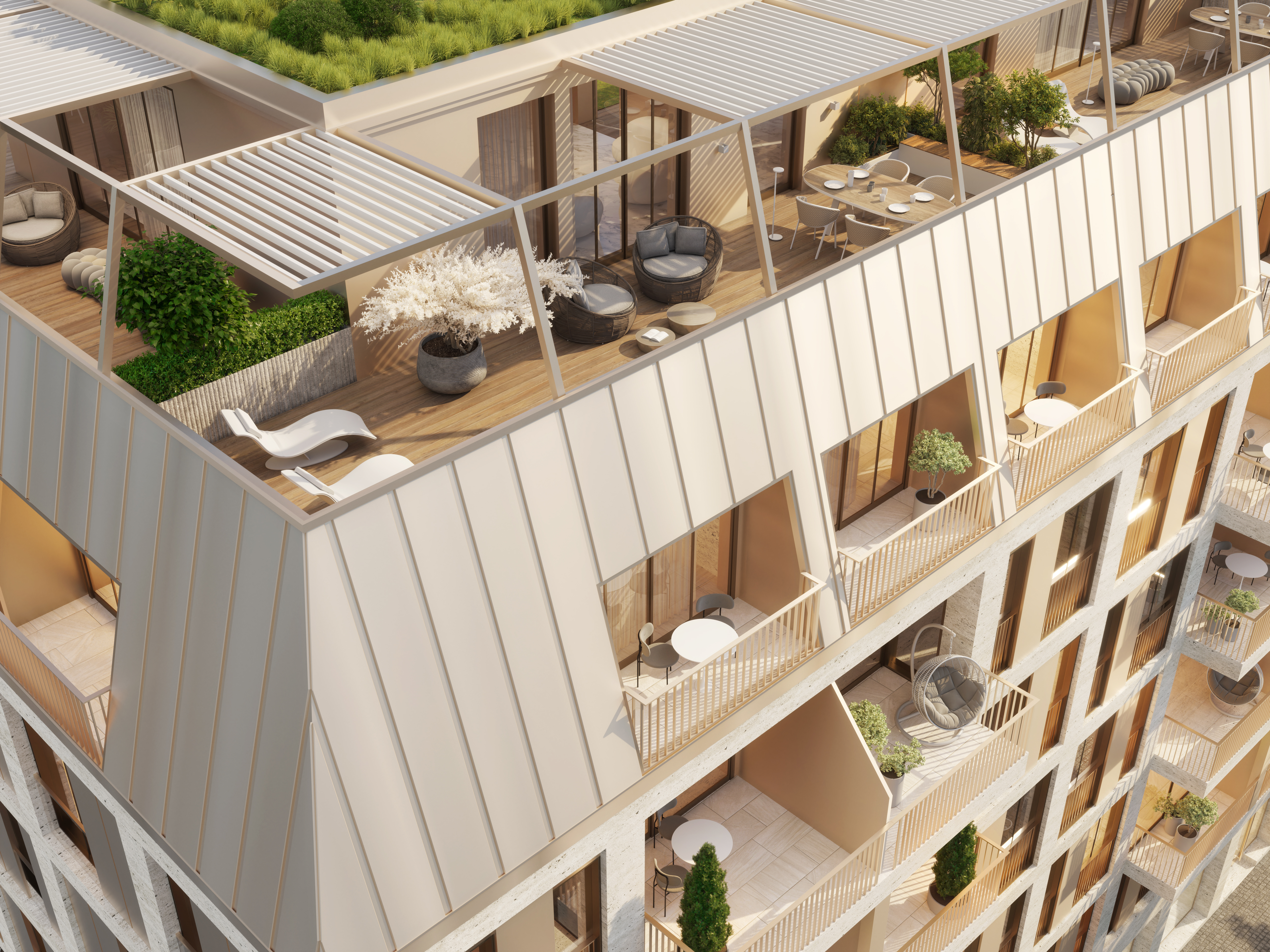 • 5 Premium-Penthouses über 2 Ebenen mit Dachterrasse und ca. 125 – 161 m² Wohnfläche im 6. OG plus DG