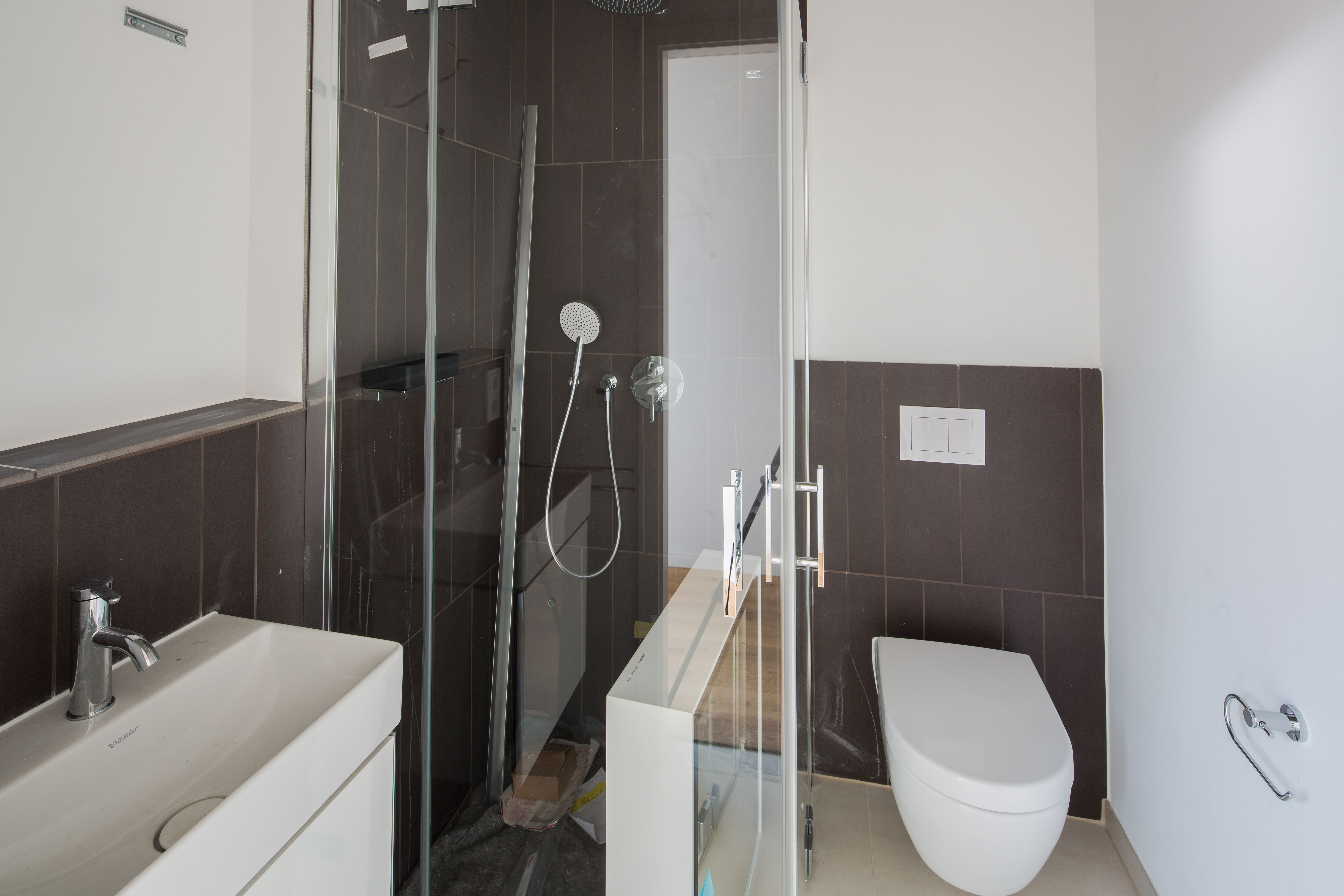 • Bodengleich gefliester Duschbereich, Glasduschtrennwand