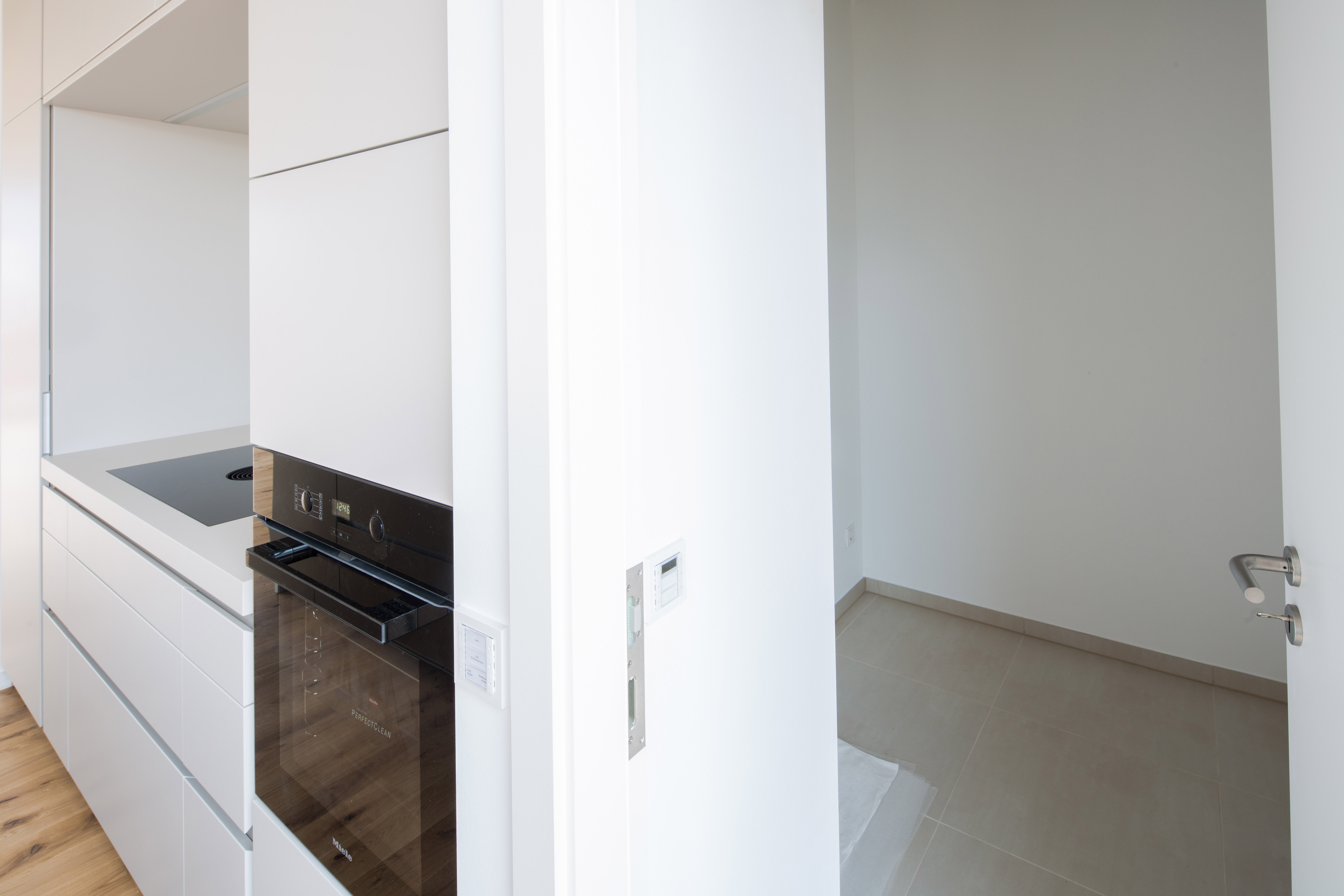 • Eichenparkettböden in den Wohnräumen und Wohnküchen, hochwertige Fliesen in den Bädern