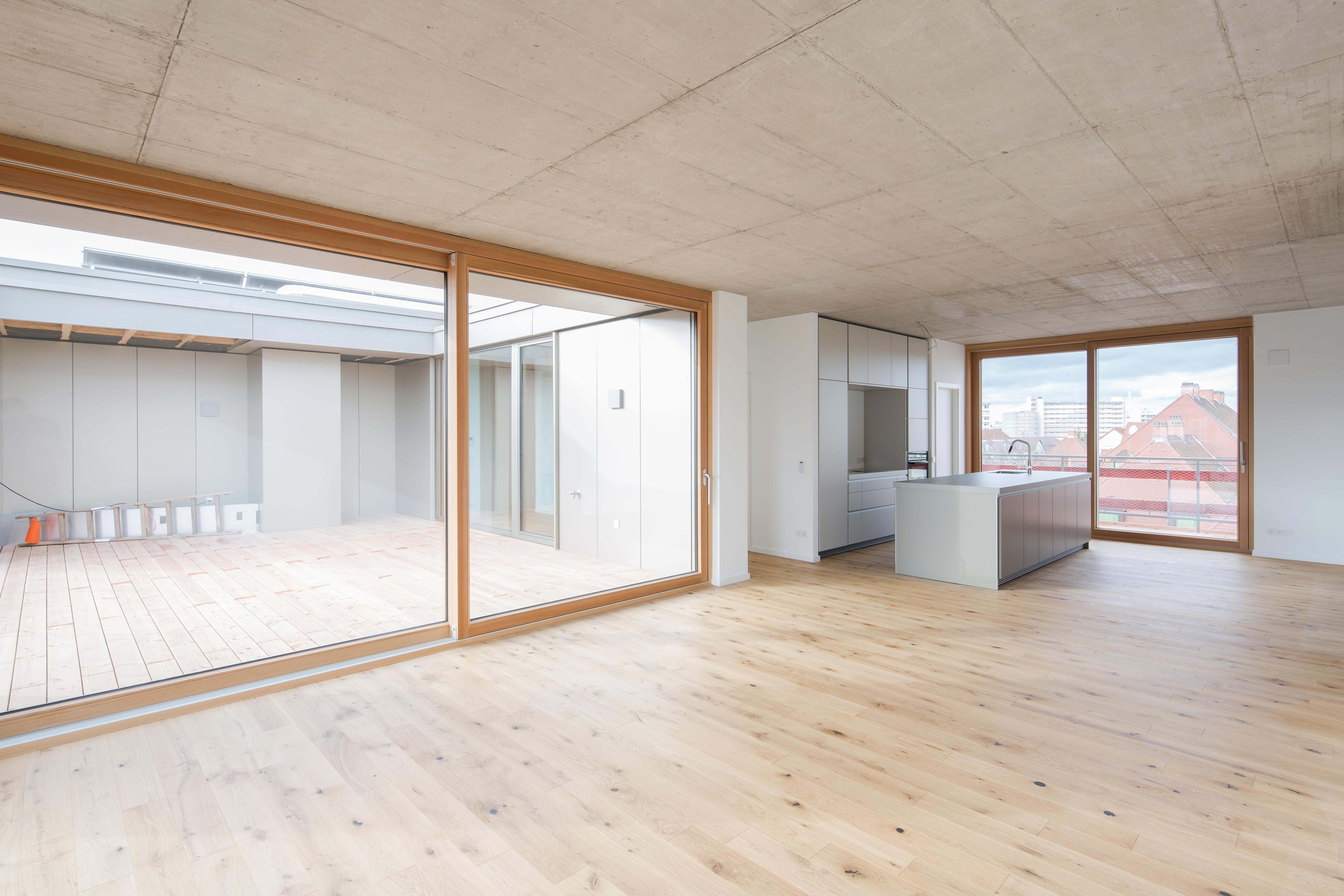 • Großzügige, bodentiefe Holz-Fensterelemente mit 3-Fach-Wärmeschutzverglasung