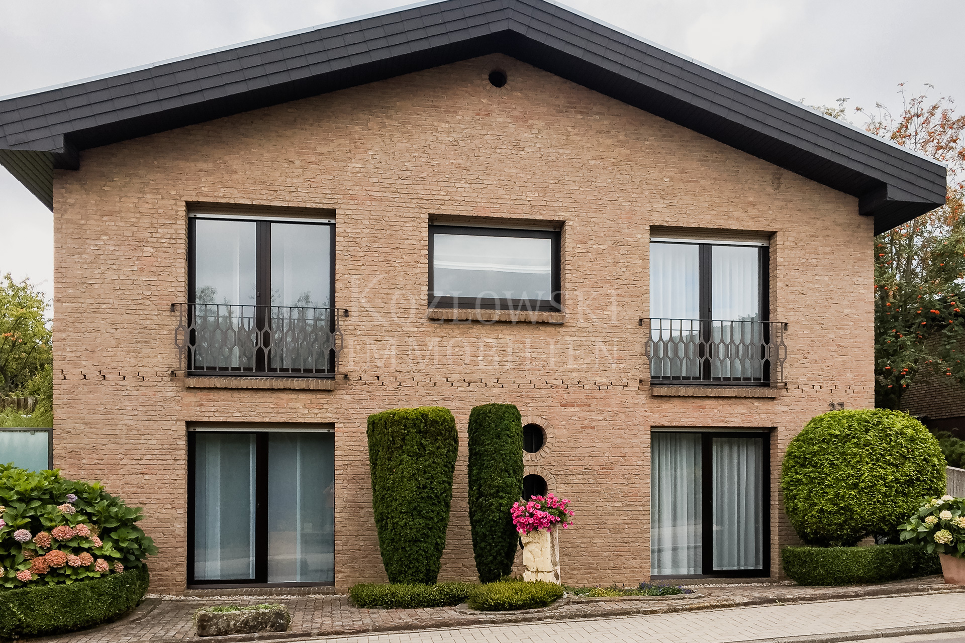 Auf dem Weg zum Hambacher Schloss fällt diese markante Satteldachvilla in der gehobenen Nachbarschaft bereits durch seine Außenfassade mit freundlichem und zeitlosem holländischem Klinker auf.