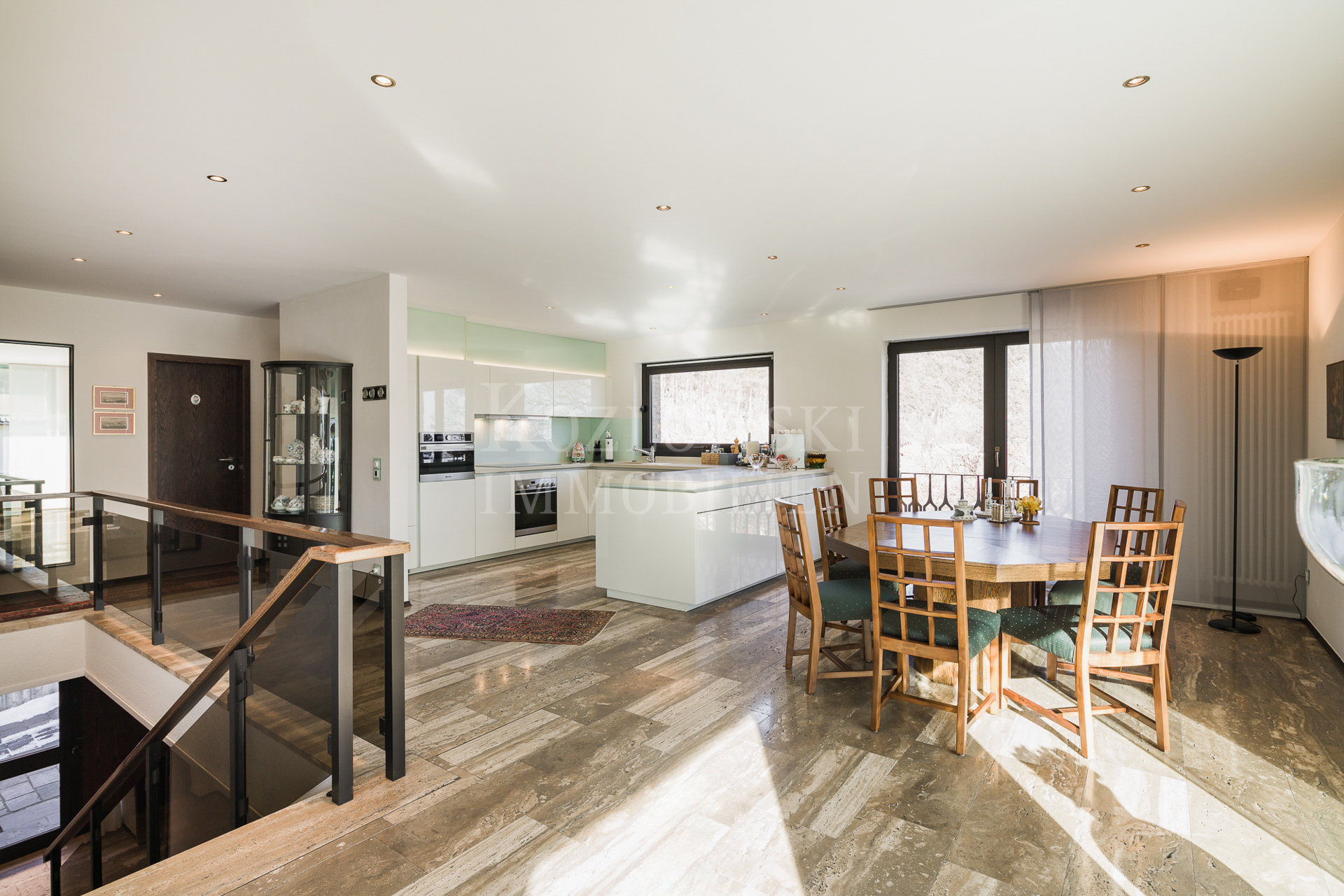 • Großformatige ital. Marmorfliesen (offener Travertin)