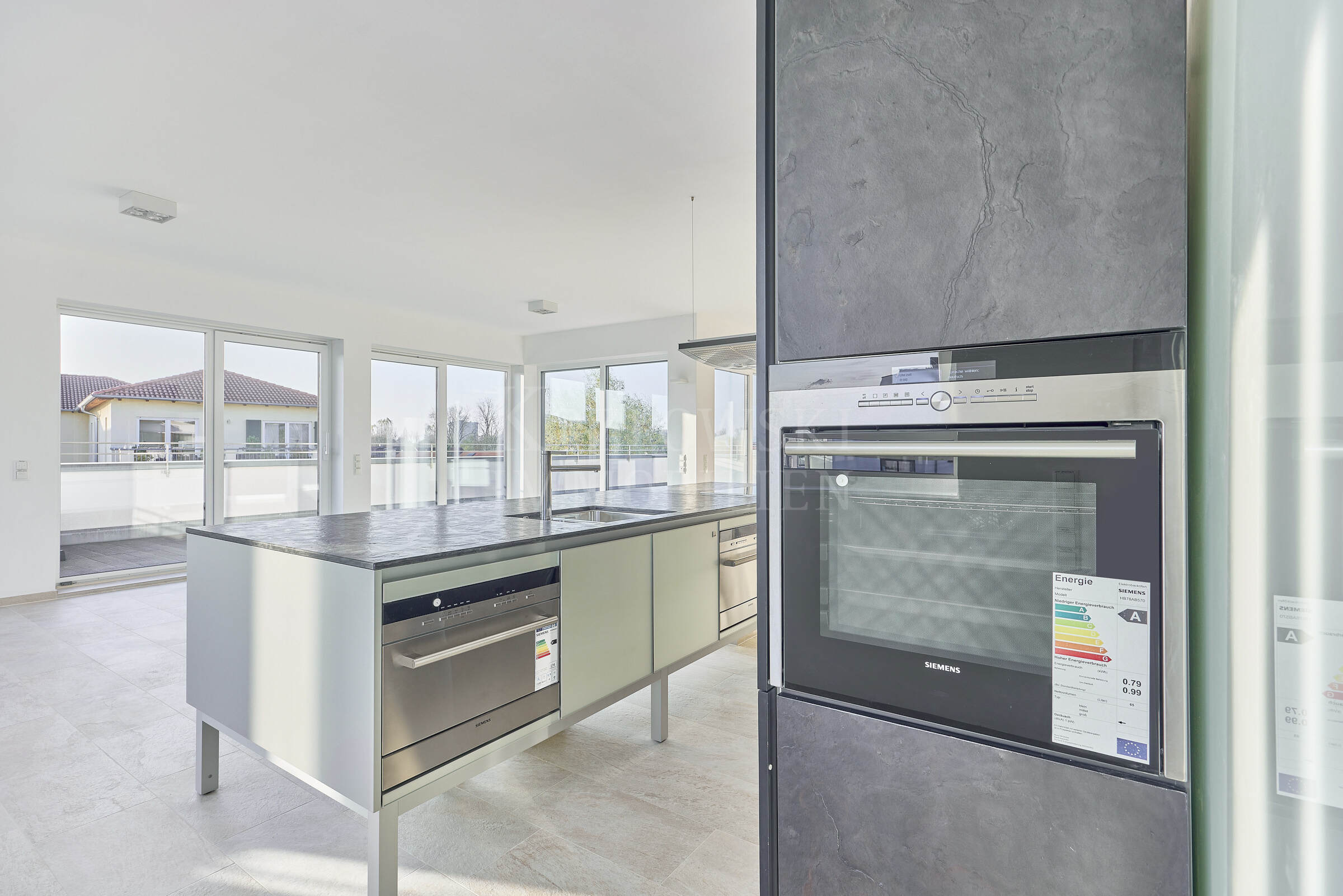 • Zeyko-Design-Einbauküche mit großem Küchenblock (1,2 x 3,5 m) und modernster MIELE/SIEMENS-Technik