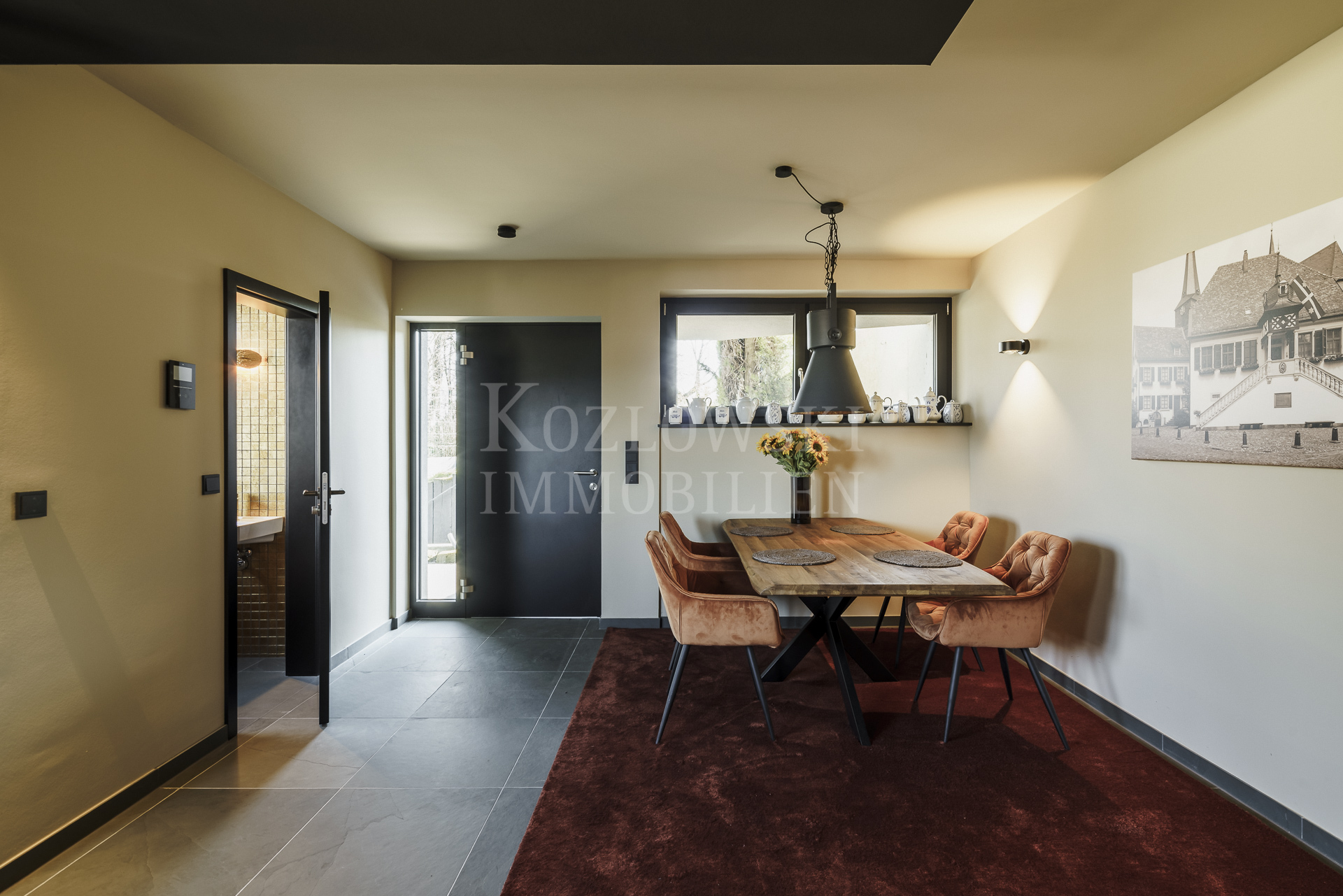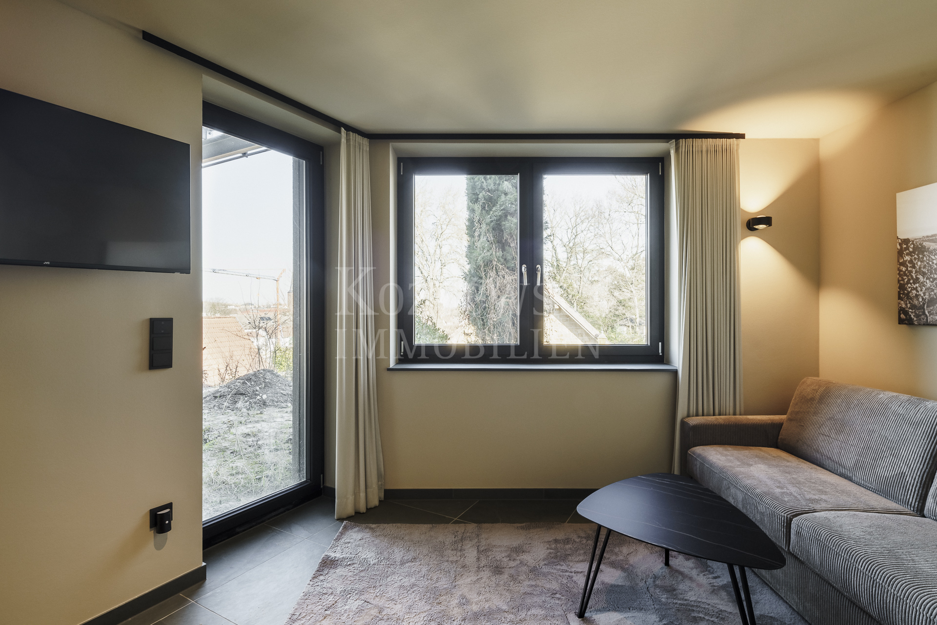 Ein offener Koch- und Essbereich, ein Wohnzimmer mit Terrassenzugang, zwei Schlafzimmer, ein modernes Tageslicht-Duschbad sowie ein Gäste-WC schaffen ein anspruchsvolles Wohnambiente. Nach einer umfassenden Modernisierung im Jahr 2023 steht die Wohnung nun als Erstbezug nach Sanierung zur Verfügung. Im Sommer 2025 wird zusätzlich eine Nord-Ost-Terrasse fertiggestellt, die das Wohnerlebnis perfekt abrundet.