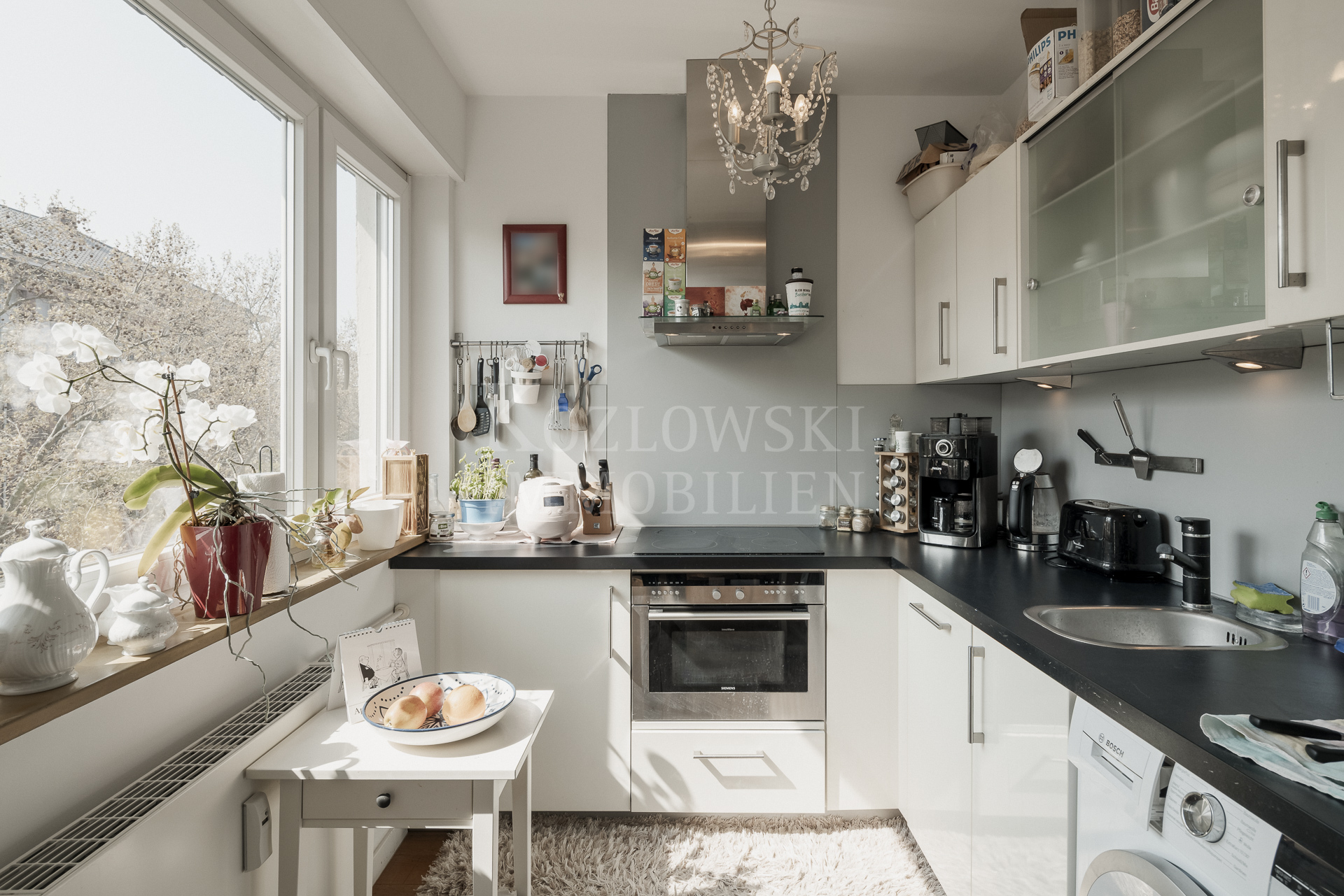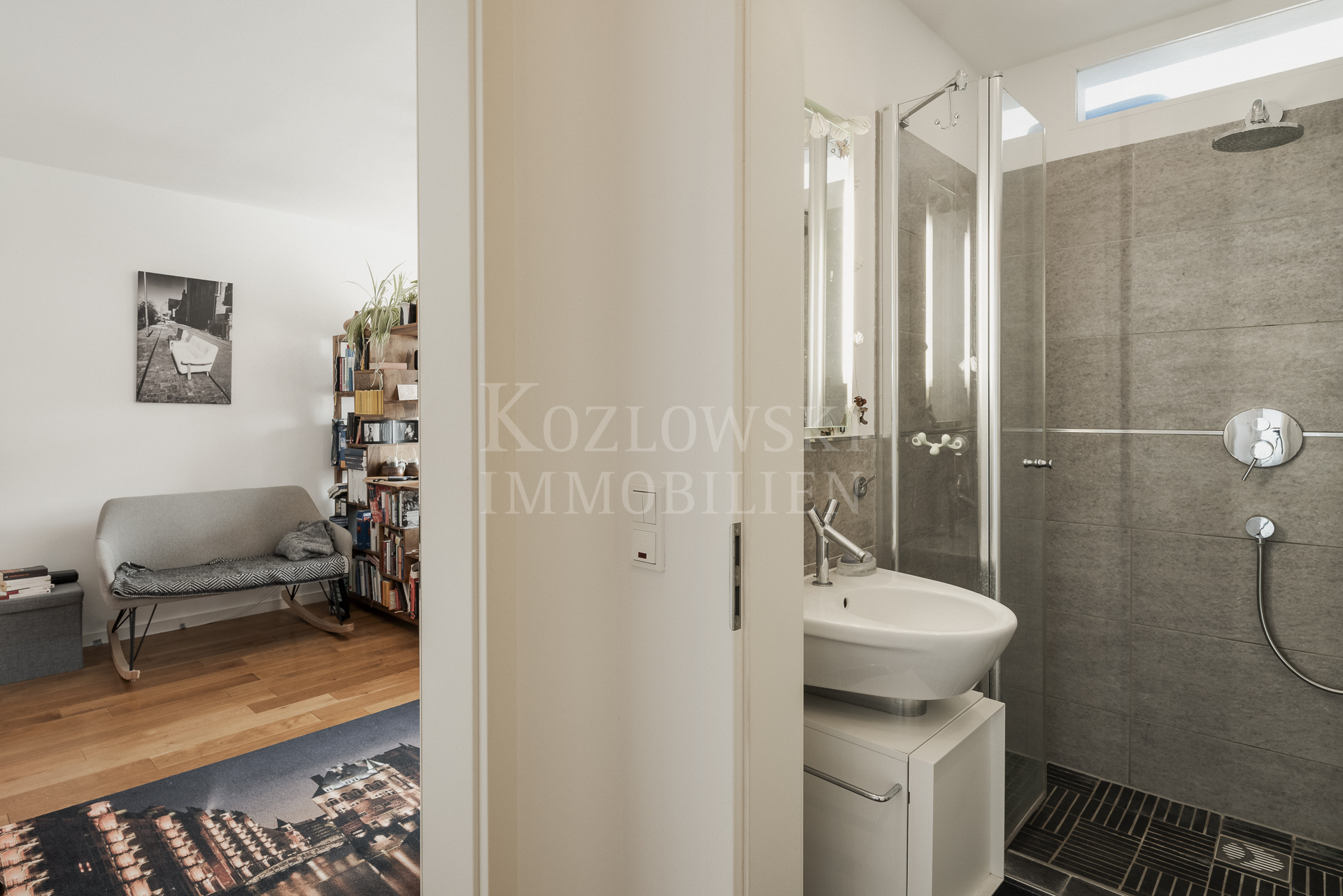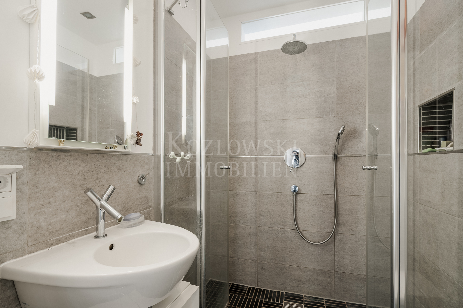 Insgesamt erwarten Sie hier ein stylisches Duschbad mit Oberlicht, ein großzügiger Wohn- und Schlafbereich mit Sonnenbalkon sowie eine mit einem neuen Schiebeelement abgetrennte Einbauküche. Das geölte Massiv-Eichendielenparkett veredelt die durchaus hochwertige Einrichtung. Im Eingangsbereich existiert ein Spiegeleinbauschrank, im Wohn-Schlafzimmer befindet sich zusätzlich noch ein praktischer Abstellraum. Sämtliche Fenster sind mit elektrischen Rollläden ausgestattet. Abgerundet wird die Wohnung durch den dazugehörigen Kellerraum.