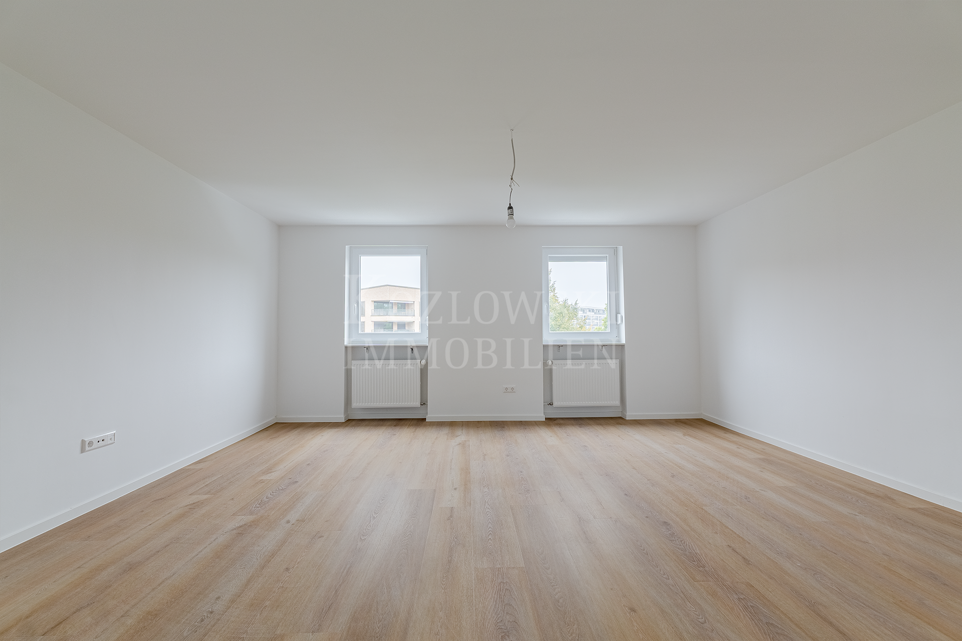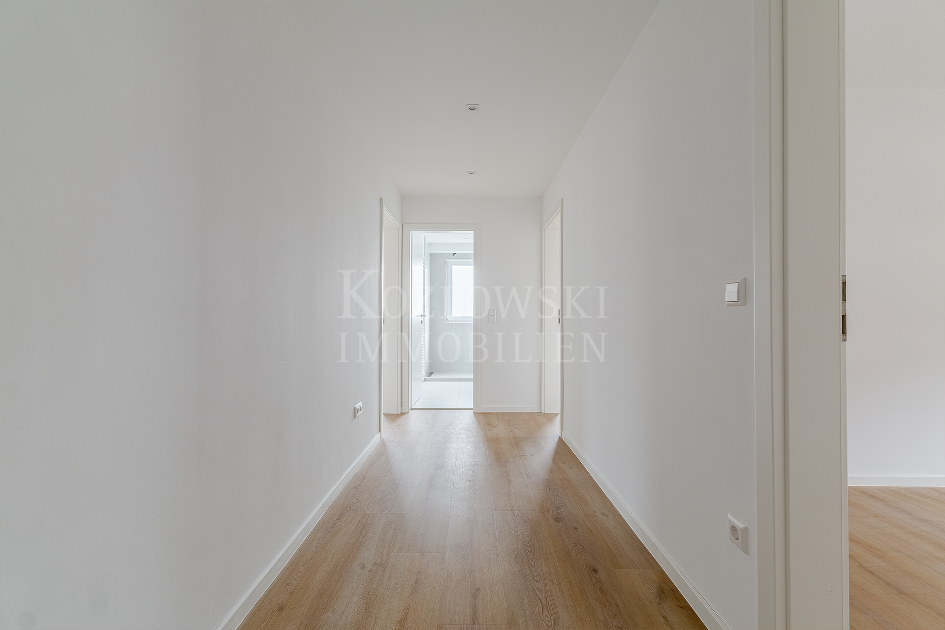 Die insgesamt ca. 83 qm Wohnfläche verteilt sich auf einen langläufigen Flur, eine Wohnküche nebst einer hochwertigen neuen Einbauküche mit Elektrogeräten sowie einer integrierten Waschmaschine, ein großzügiges Wohnzimmer mit einem tollen Parkblick, ein stylisches Design-Tageslichtbad mit Walk-In Dusche sowie zwei helle Schlafzimmer. Der modernen und schicken Ausstattung mit u. a. Design-Vinylböden in Eichparkettoptik, Tageslichtbad, LED-Decken-Einbauspots und puristischen Einbauküche mit Kochinsel fehlt es an nichts und wird dieser attraktiven Wohneinheit mehr als nur gerecht, so dass Ihrem baldigen Erstbezug nichts im Wege steht.