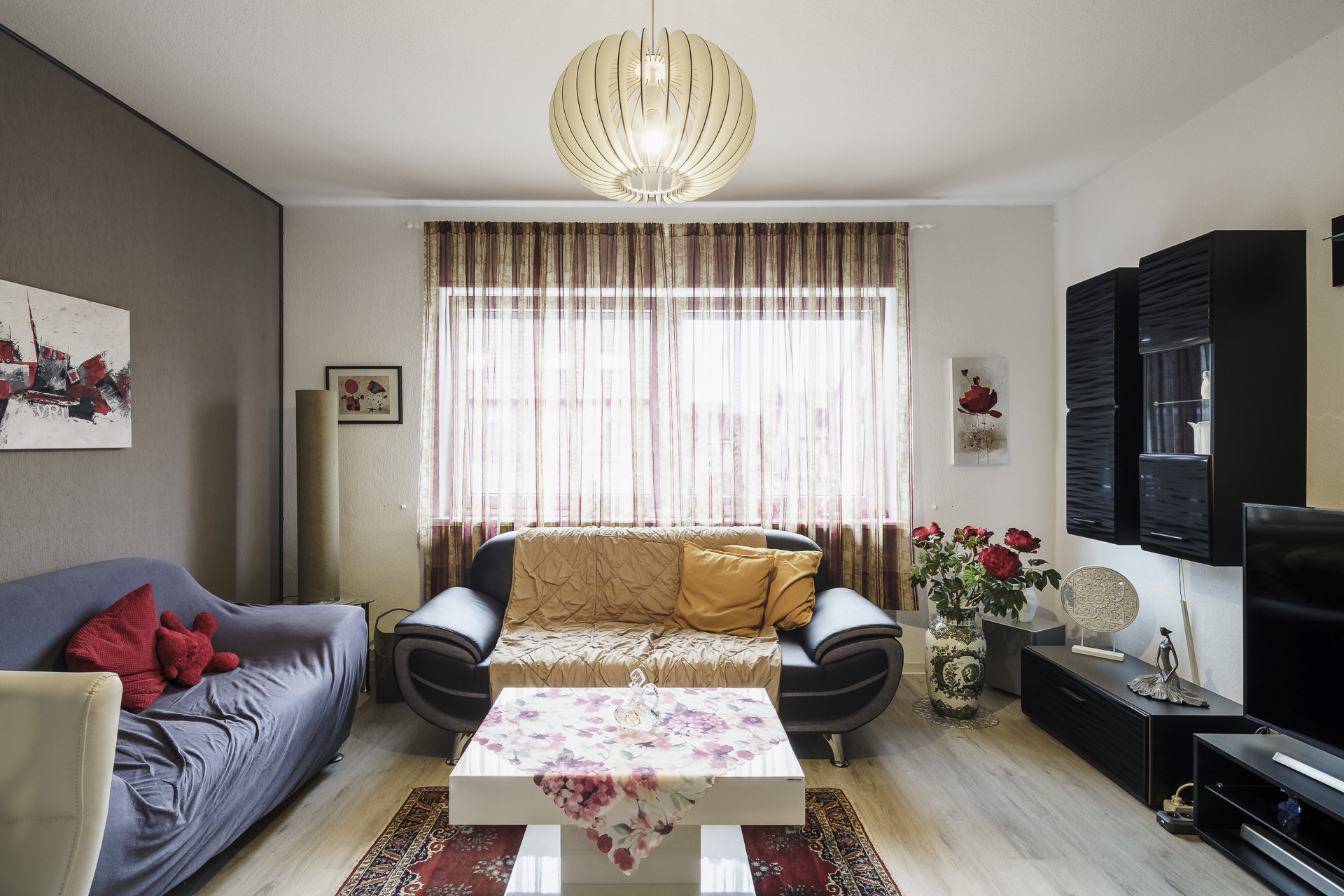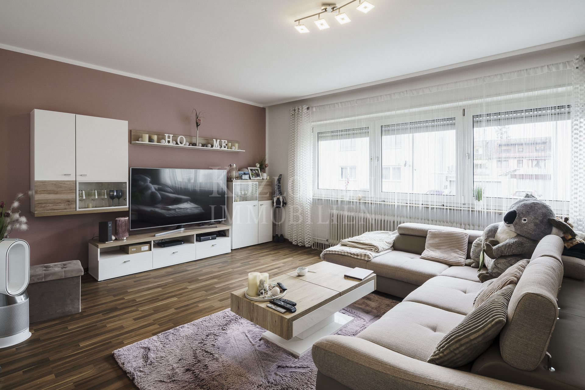 • Bodenbeläge: Laminatboden in den Wohnräumen, Fliesenböden in Bädern und Küche