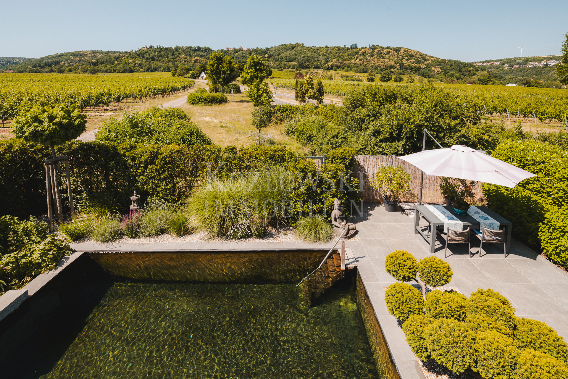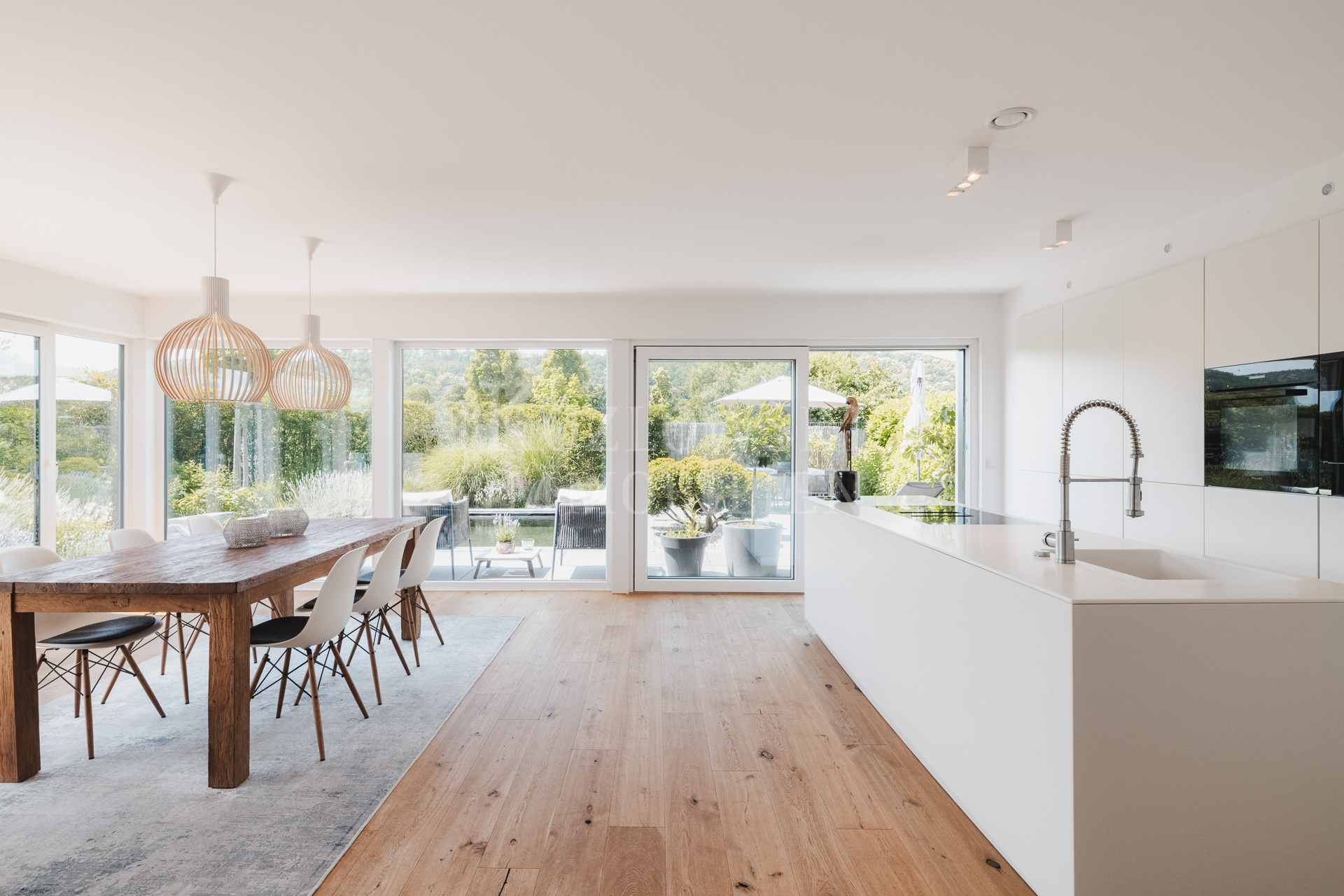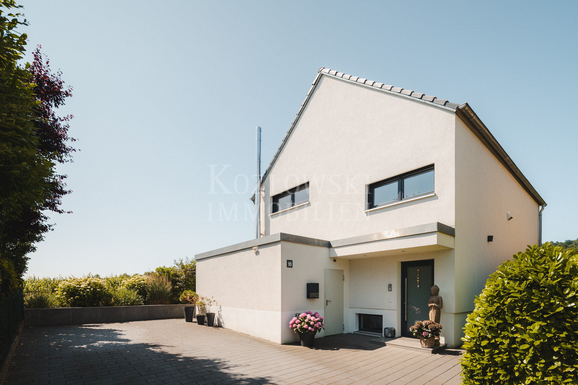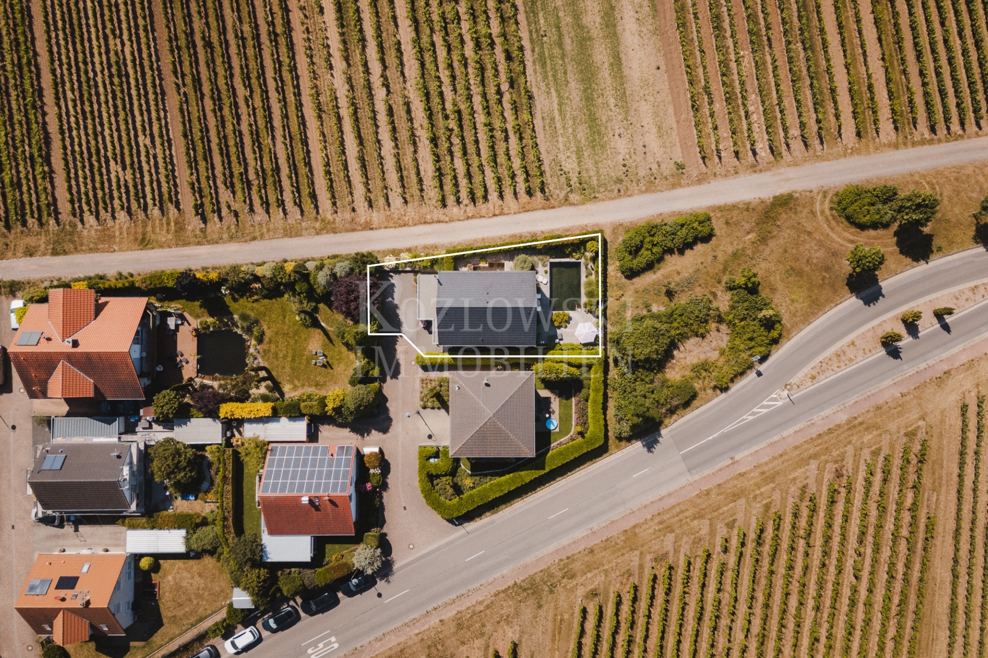 Dieses durchdacht konzipierte Architektenhaus vereint anspruchsvolle Gestaltung, nachhaltige Bauweise und eine außergewöhnliche Lage. Hier wohnen Sie ruhig und naturnah mit direktem Zugang zu den Weinbergen und unverbaubarem Blick in die herrliche Pfälzer Landschaft.