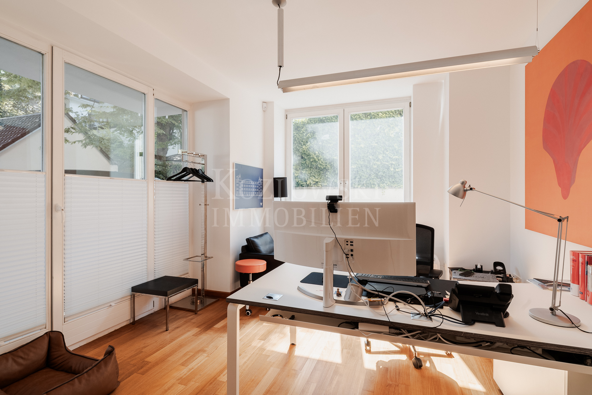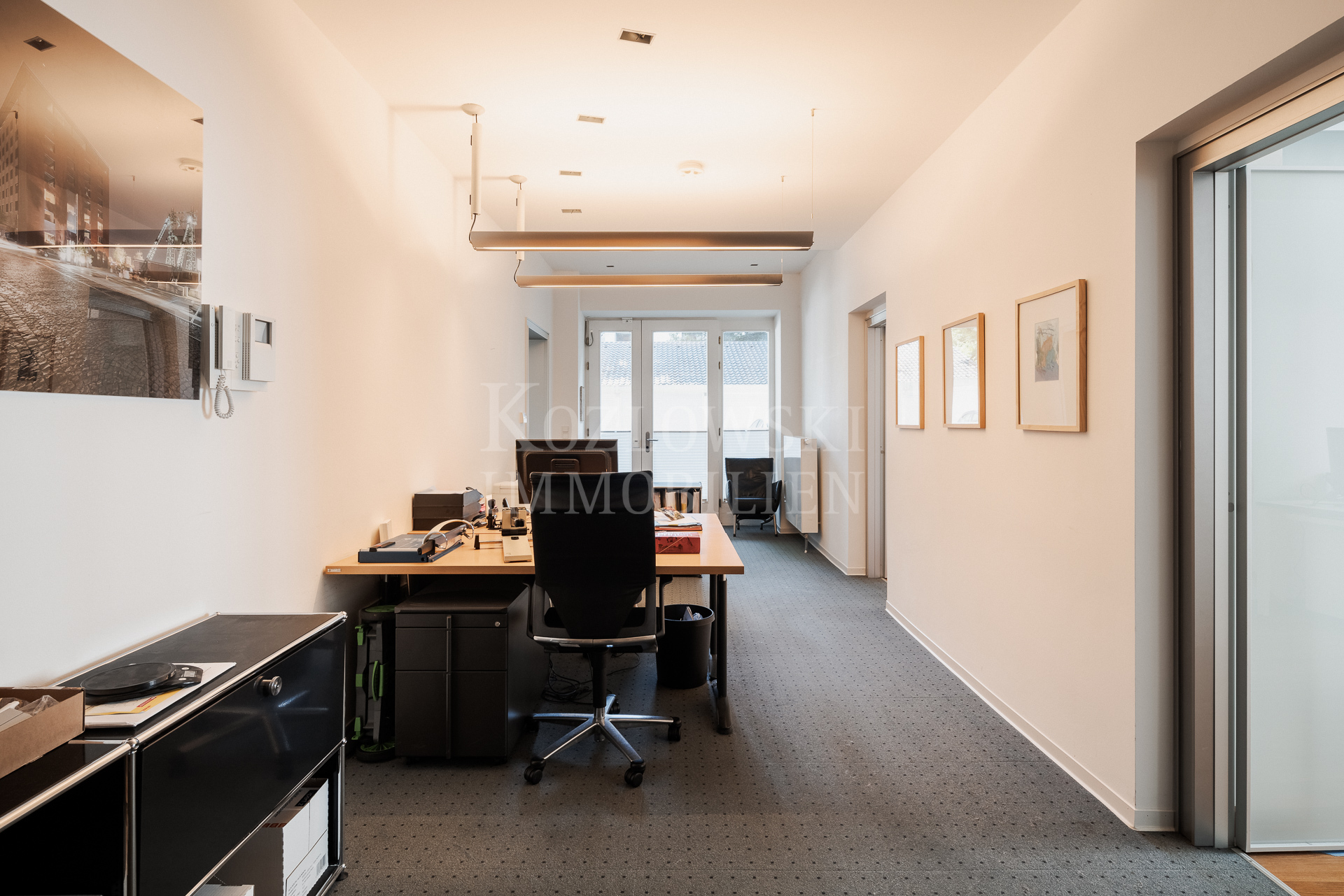 Diese Kombination aus Stil, Funktionalität und Rendite macht das Objekt zu einer attraktiven Investition oder einer perfekten Lösung für den eigenen Unternehmenssitz. Seit dem 01.07.2024 ist die Einheit an eine Rechtsanwaltskanzlei zu einer monatlichen Nettomiete von EUR 1.500,- vermietet. Die Kündigungsfrist beträgt sechs Monate. Laut Teilungserklärung darf die Etage zudem auch zu Wohnzwecken genutzt werden.