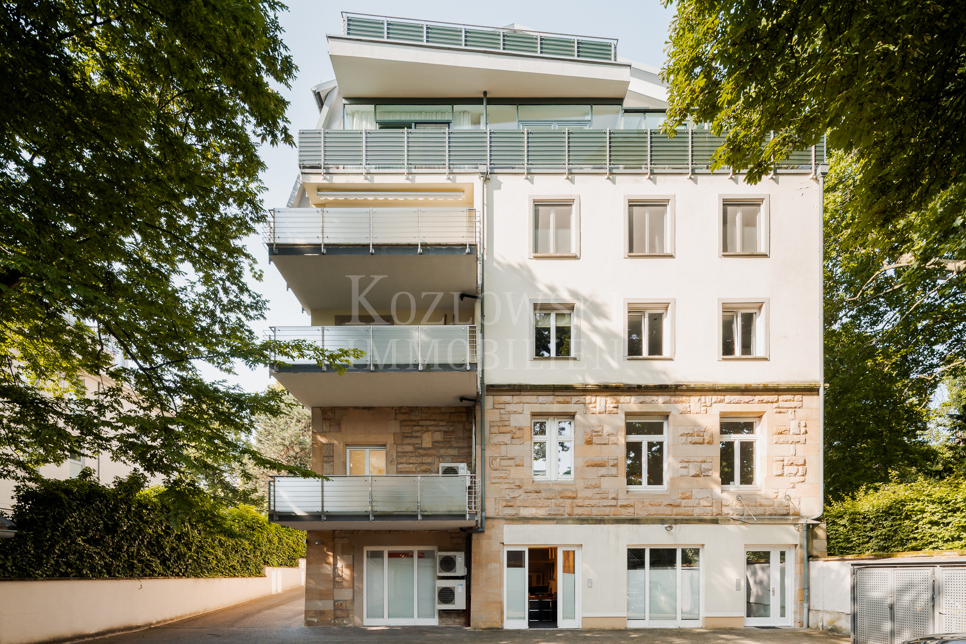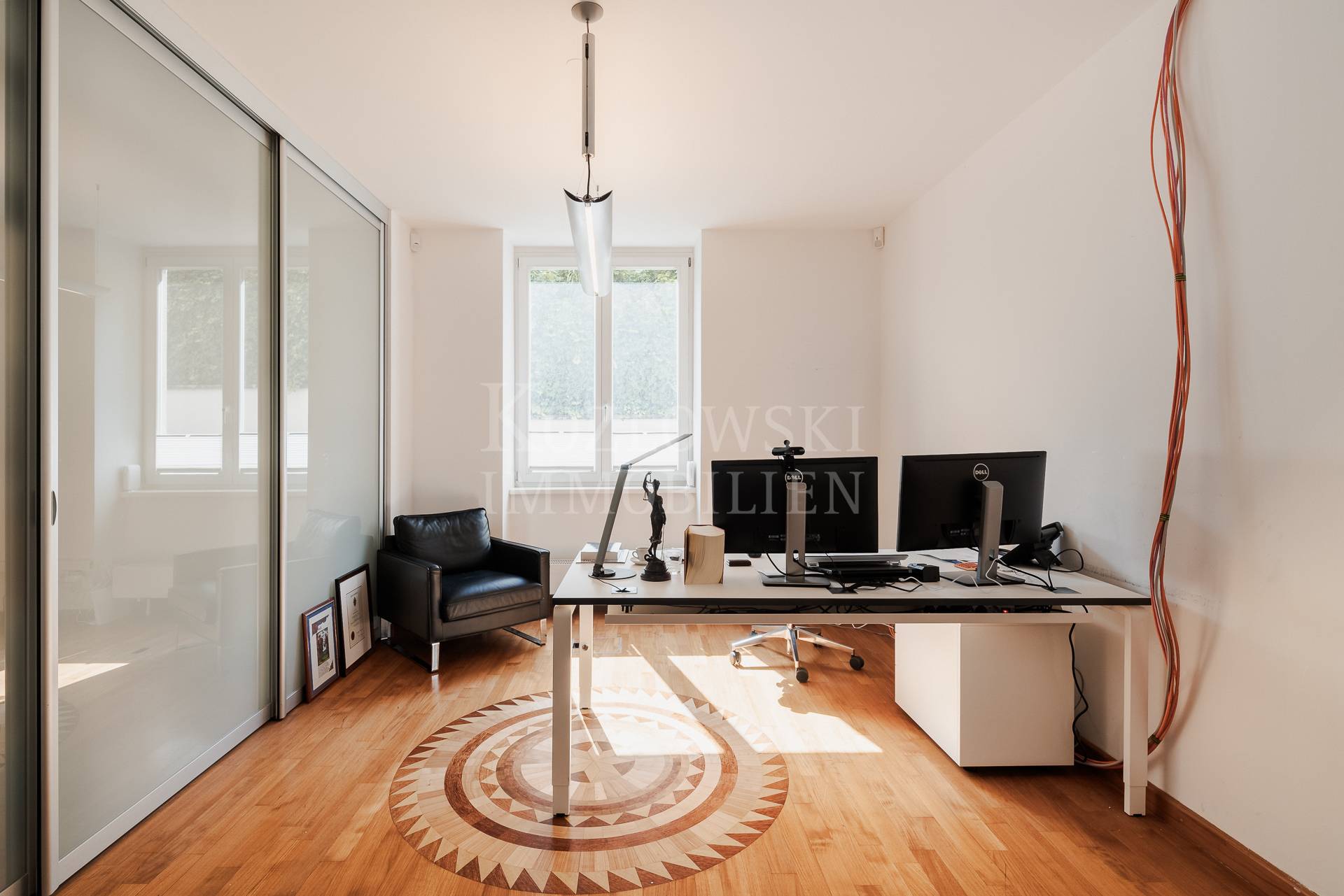 Bei weiterem Raumbedarf bietet sich im Hochparterre derselben Villa eine zusätzliche Einheit mit ca. 240 m² an. Sie eignet sich ideal für die anspruchsvolle Verbindung von Wohnen und Arbeiten in repräsentativem Rahmen.