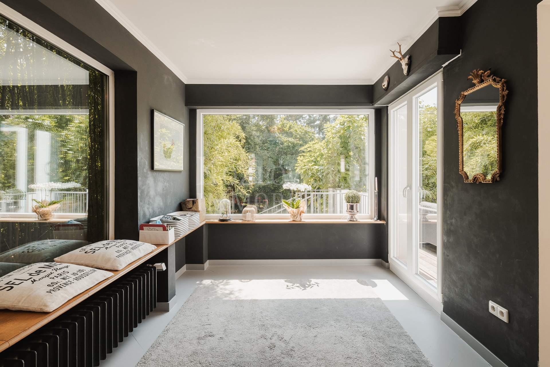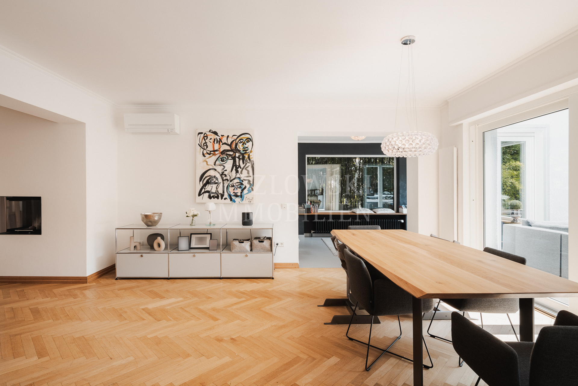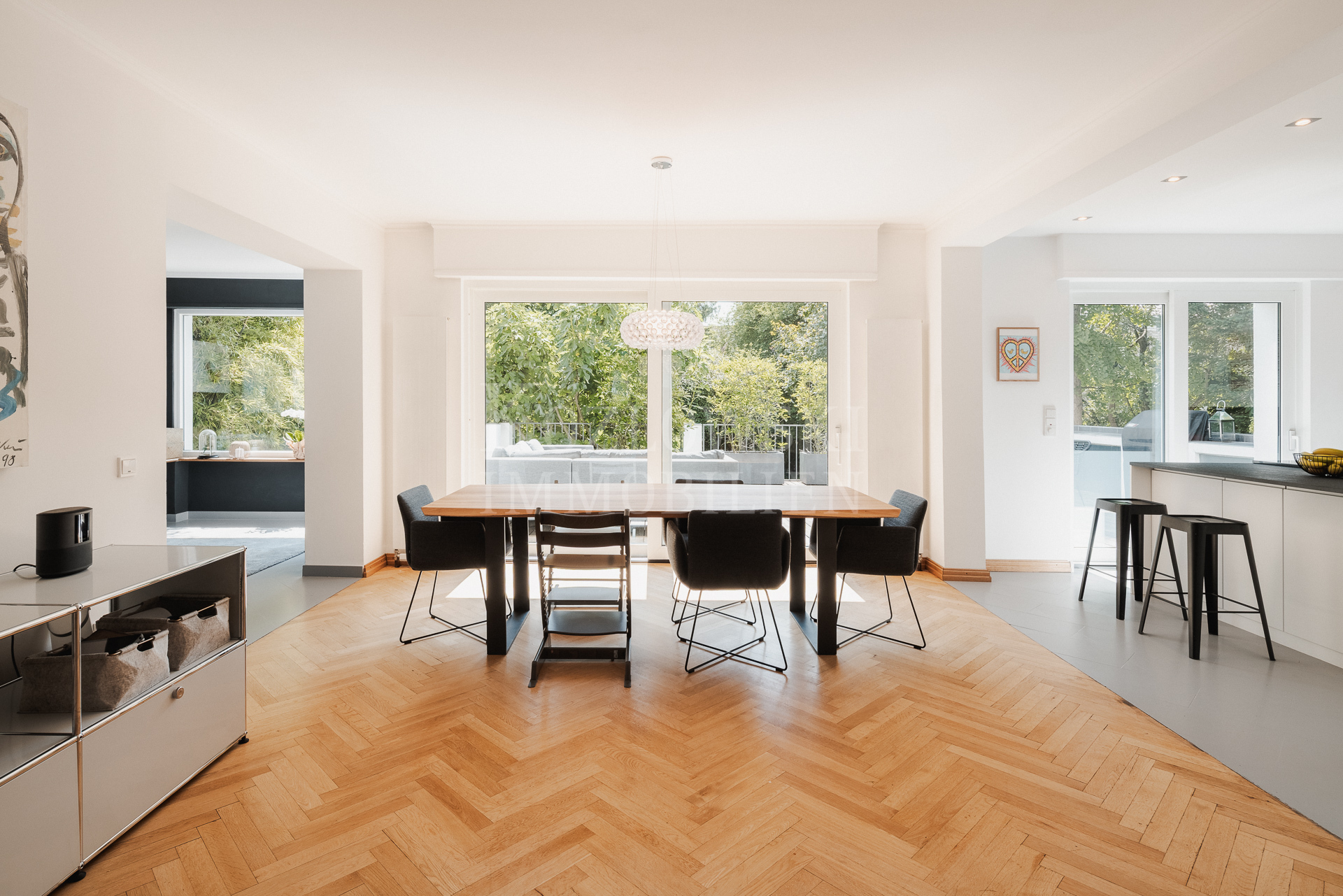 • Weitläufiger Wohnbereich im Erdgeschoss mit Sonnenterrasse inkl. Außenküche und Blick in den Garten