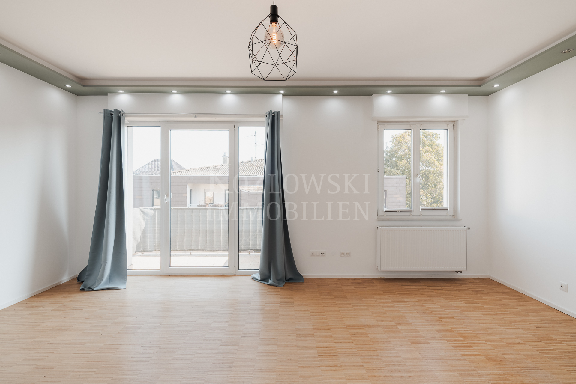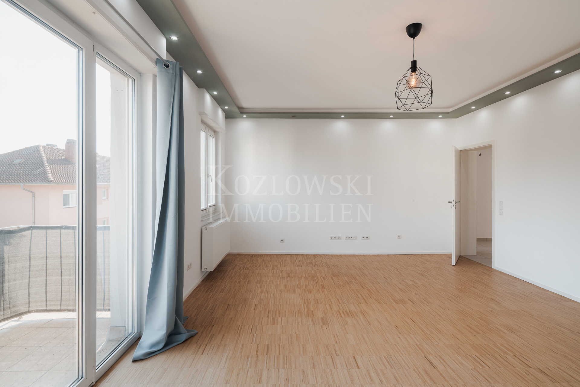 Auf ca. 108 qm Wohnfläche überzeugt die Wohnung mit einer gelungenen Raumaufteilung und hohen Decken von über 2,74 m. Die geräumige Diele mit kleinem Innenhofbalkon führt in alle weiteren Räume, darunter die separate Wohnküche inklusive moderner Einbauküche. Das Wohnzimmer mit nach Osten ausgerichtetem Balkon mit Fernblick schafft eine gemütliche Wohnatmosphäre. Zwei gut geschnittene Schlafzimmer, eines davon mit einem weiteren Ostbalkon, bieten je nach Personenzahl vielseitige Nutzungsmöglichkeiten, ein modernes Tageslichtbad mit Wanne und WC ergänzt das stimmige Gesamtbild dieser attraktiven Wohnung.
