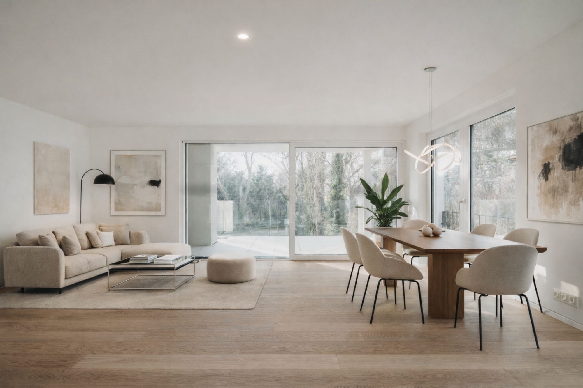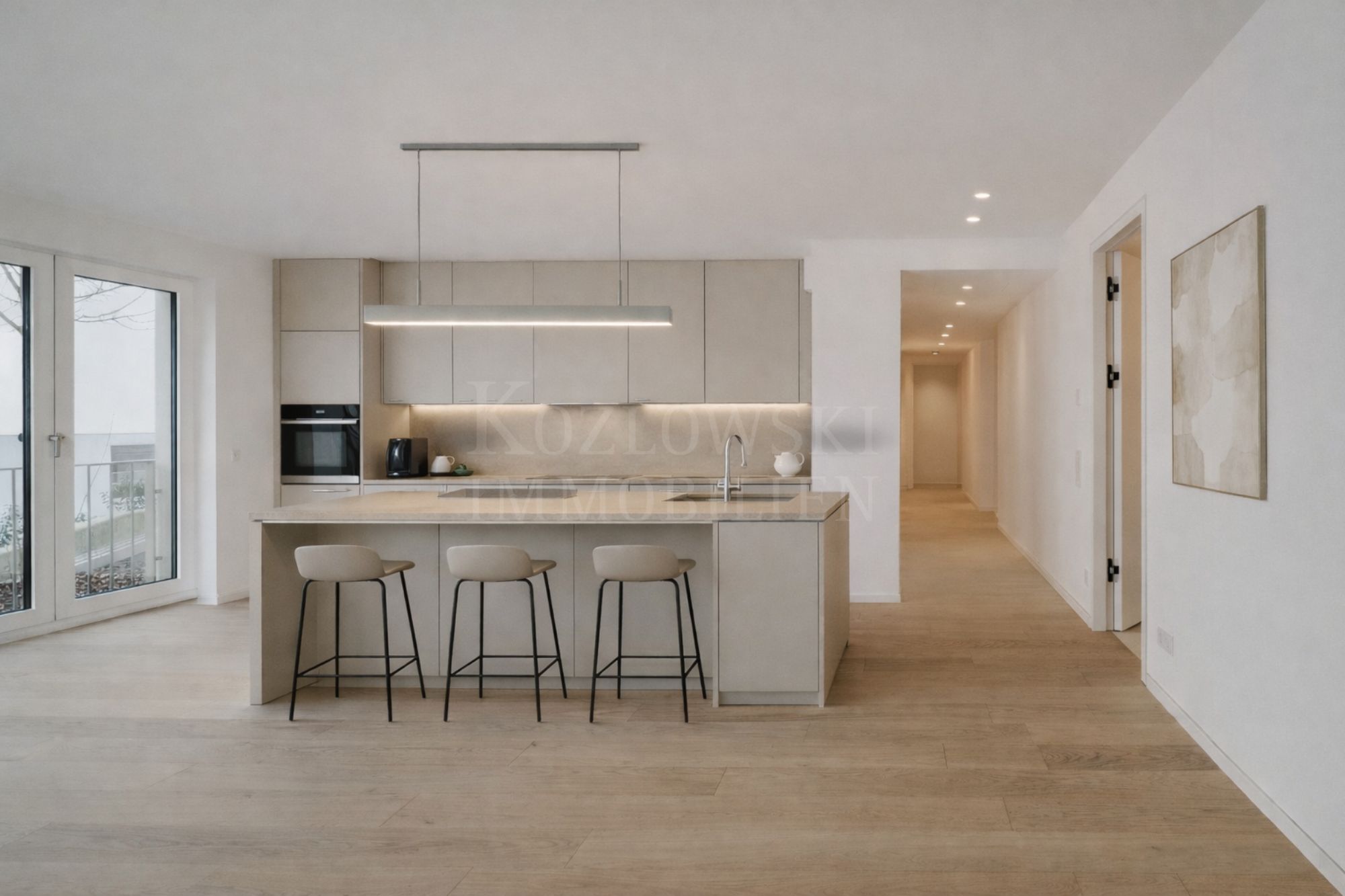 Für zusätzlichen Platzbedarf steht auf derselben Etage eine gleichwertig hochwertige 4-Zimmer-Terrassenwohnung mit ca. 147 qm Wohnfläche, ebenfalls im Erstbezug, zum Verkauf. Beide Wohnungen können zu einer außergewöhnlichen 6,5-Zimmer-Etagenwohnung zusammengelegt werden: mit einem ca. 87 qm großen Wohn-/Ess-/Küchenbereich, bis zu 5 Schlafzimmern und 4 Bädern – insgesamt knapp 270 qm Wohnluxus auf Hausgrößen-Niveau.