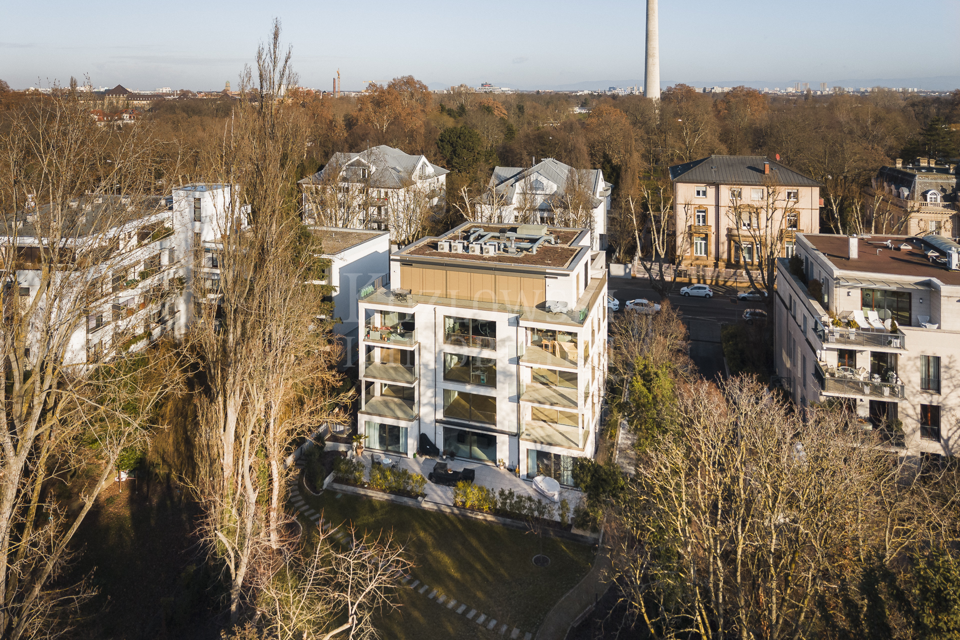 Auf der begehrten Sonnenseite in bester Villenlage der Mannheimer Oststadt, direkt gegenüber dem herrlichen Luisenpark, entstand 2025 ein neues Architekturhighlight: die PARKRESIDENZ No. 4 mit nur acht Wohneinheiten, Aufzug und Tiefgarage. Die reduzierte, kubische Fassadengestaltung und klaren Proportionen verleihen der Stadtvilla eine zurückhaltende, zugleich sehr zeitlose Eleganz.