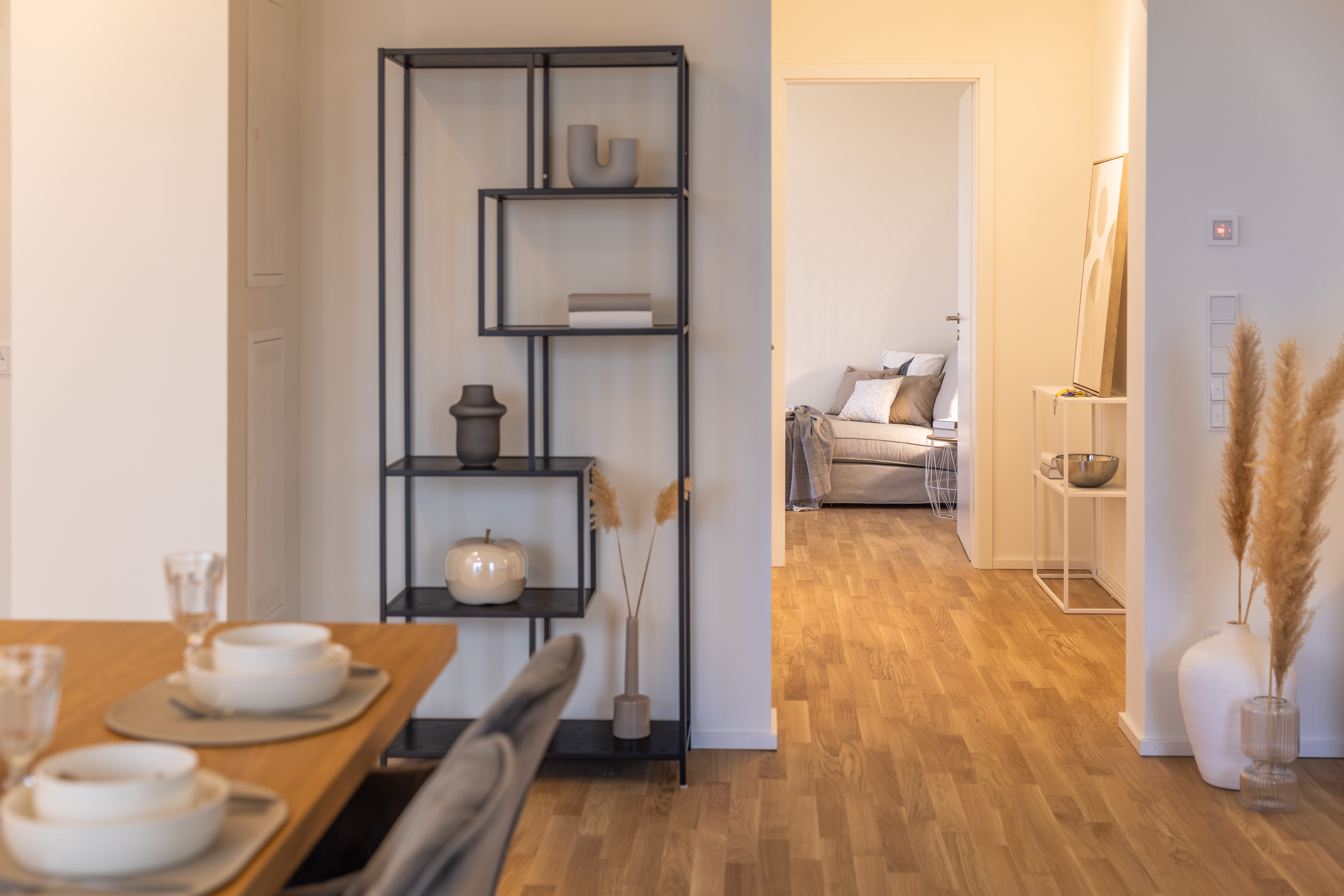 Diese helle 2-Zimmer-Neubauwohnung mit Lift verfügt über ca. 57 qm Wohnfläche und überzeugt durch einen großzügigen Wohn- und Essbereich mit offen gestalteter Küche. Das separate Schlafzimmer bietet ausreichend Platz und Rückzugsmöglichkeiten. Das Tageslichtbadezimmer ist mit Badewanne, WC sowie einem Waschmaschinenanschluss ausgestattet. Ein umlaufender Balkon erweitert den Wohnraum nach außen und sorgt für eine angenehme Aufenthaltsqualität. Ergänzt wird das Angebot durch einen Tiefgaragenstellplatz (monatlich extra EUR 120,-), ein Kellerabteil sowie die Nutzung eines gemeinschaftlichen Fahrradkellers.