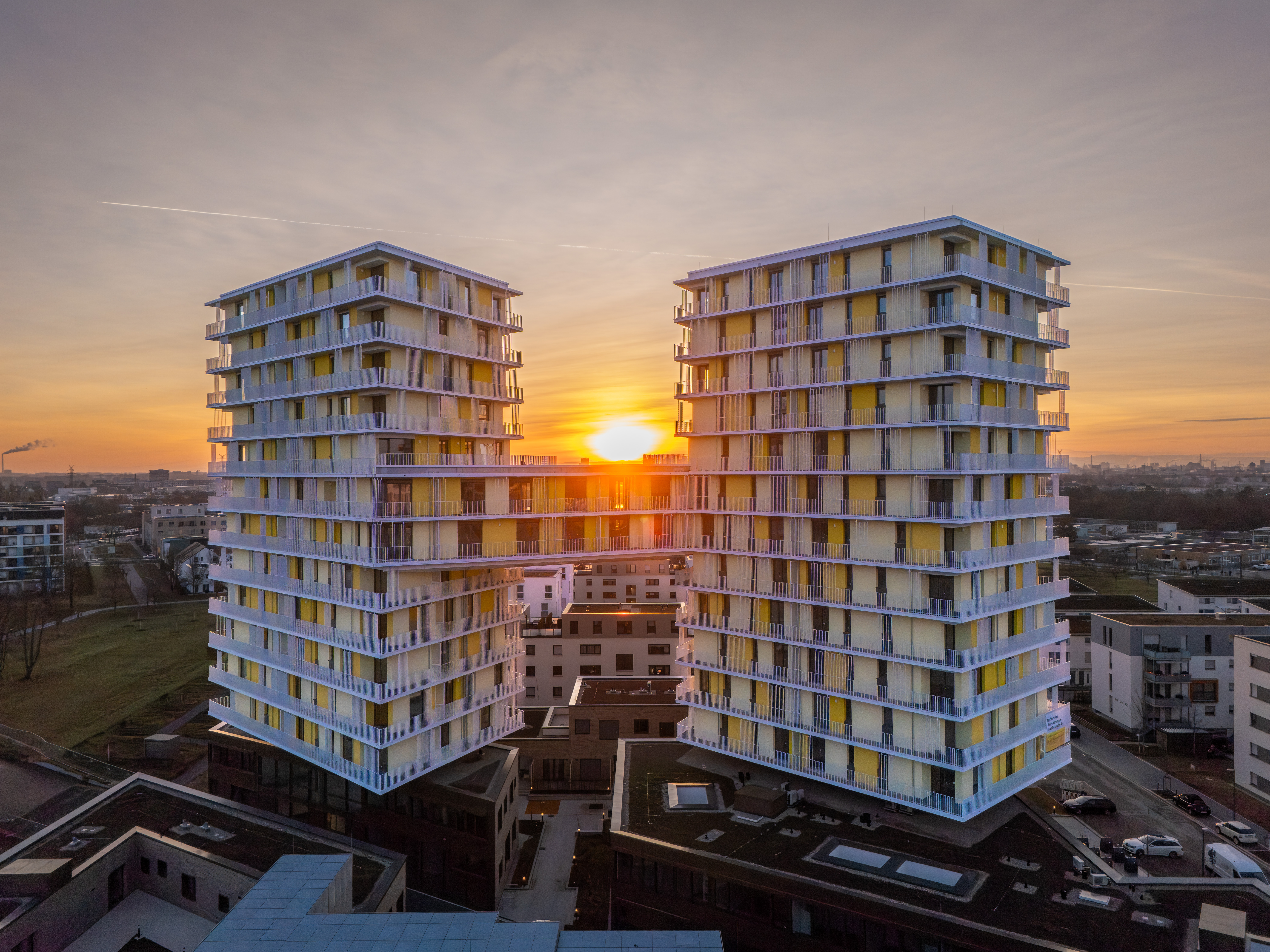 • Hochmoderner „Hochpunkt H“ mit Tiefgarage und zwei Aufzügen als KfW-Effizienshaus-55Standard