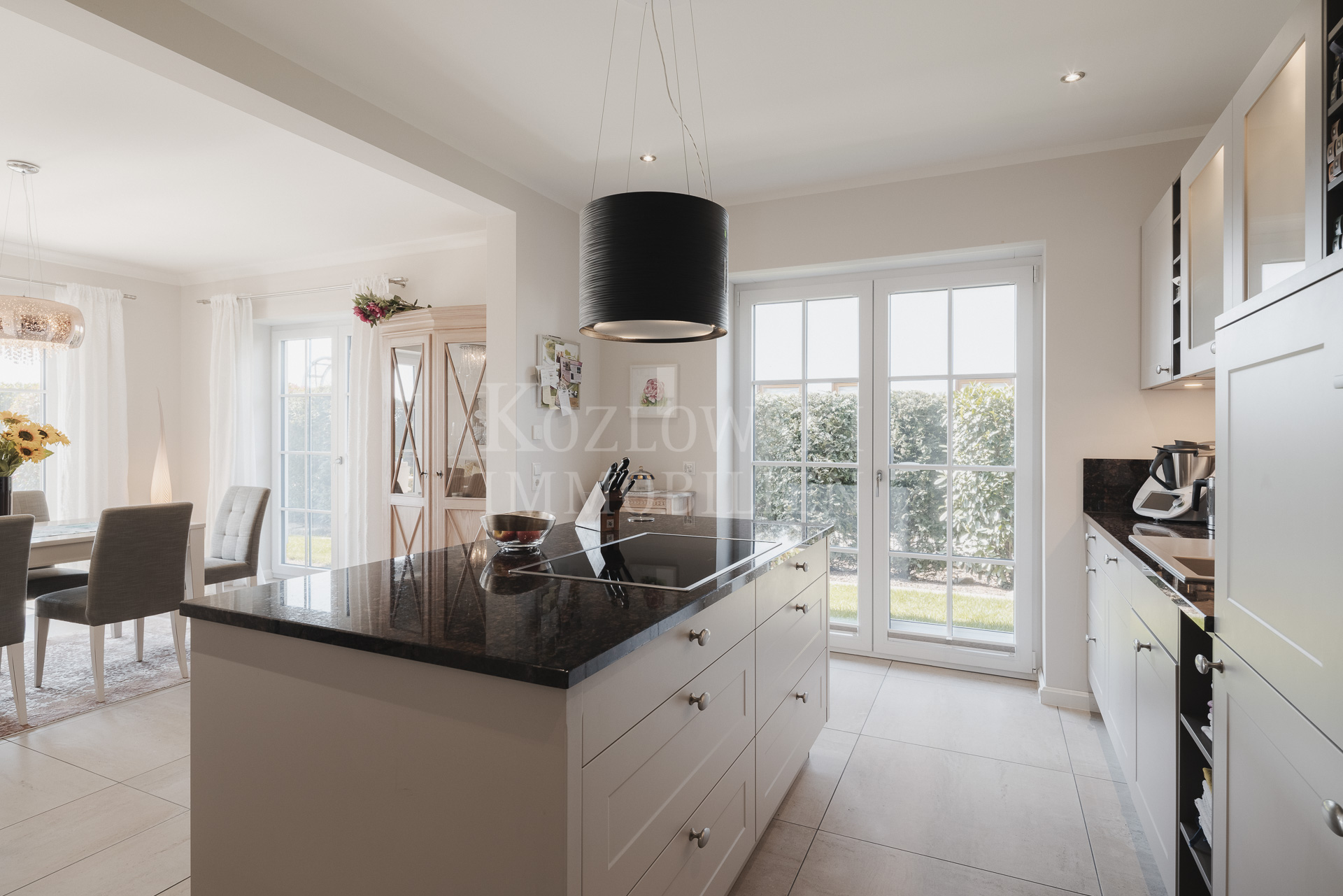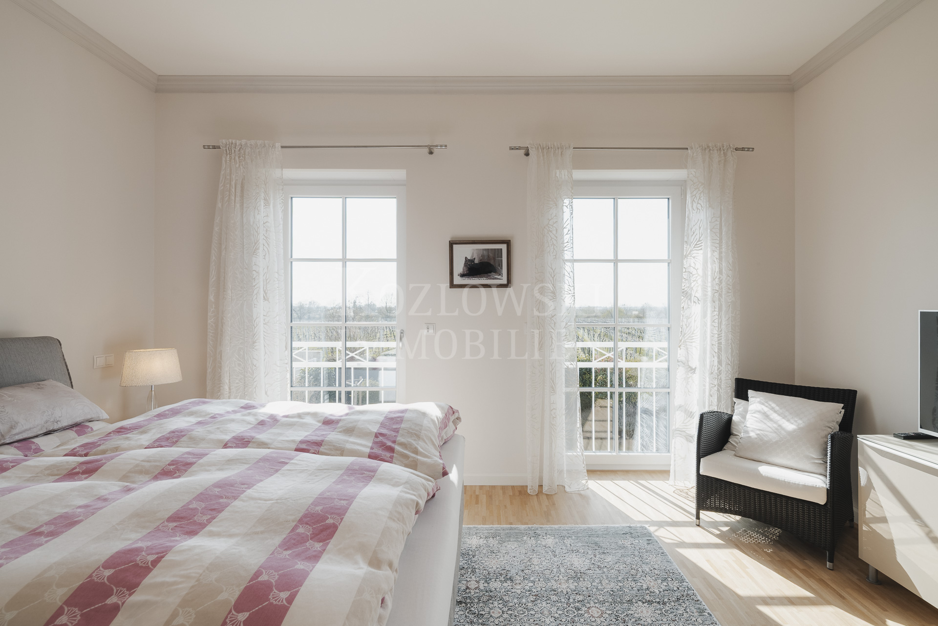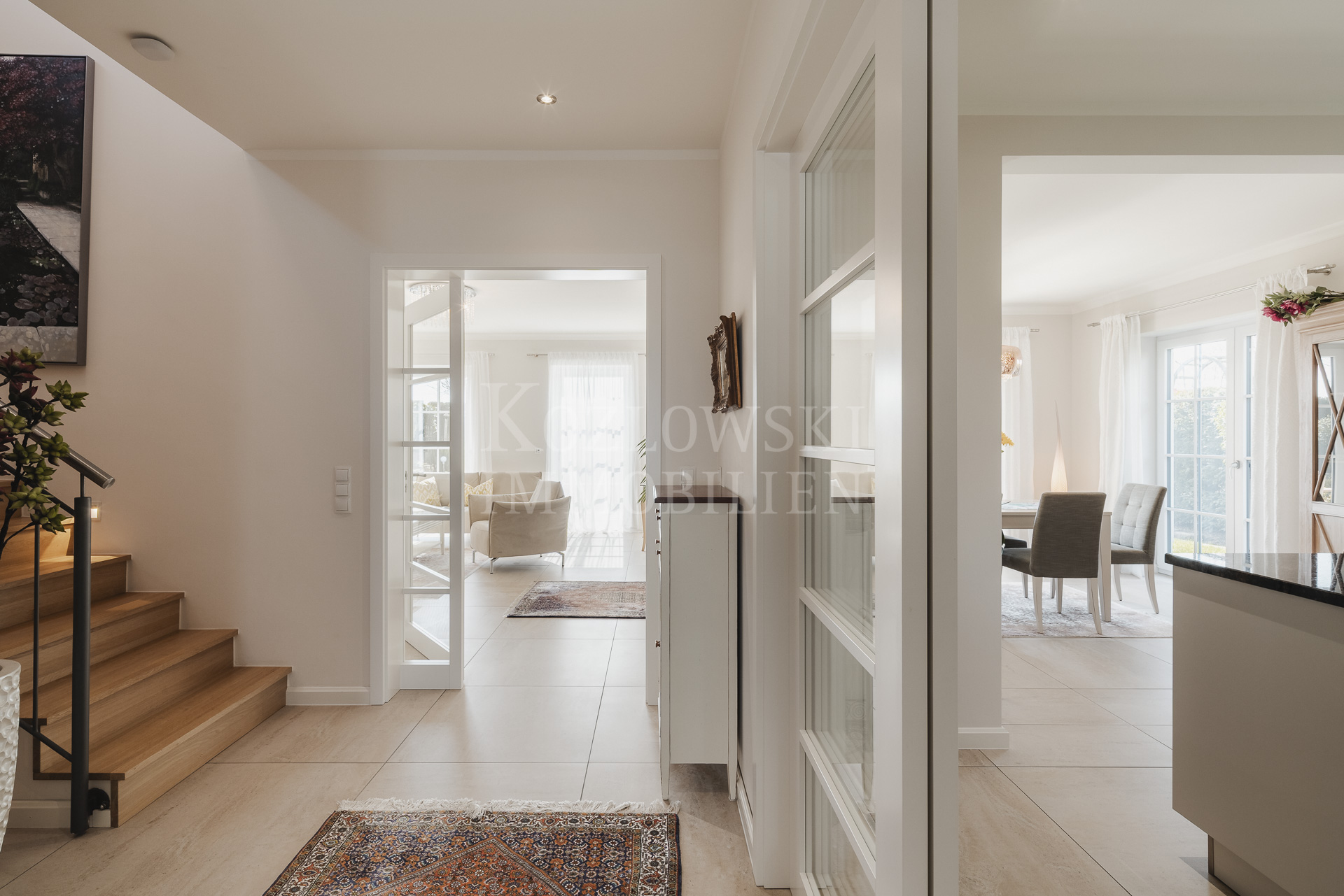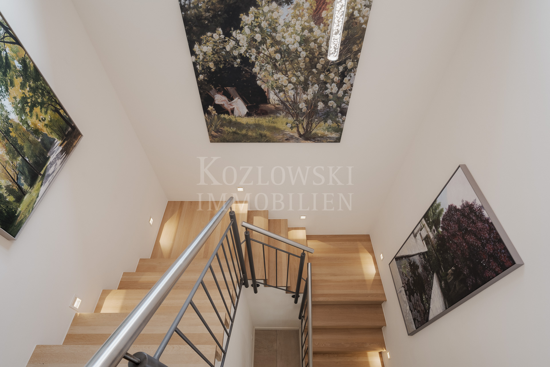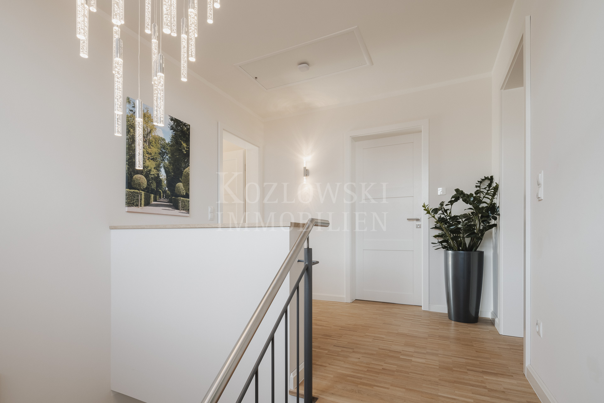 Auf ca. 182 qm Wohnfläche vereint die Villa modernes Design, hochwertige Ausstattung und höchsten Wohnkomfort mit einem großzügigen sowie durchdacht funktionalen Raumkonzept über zwei Wohnebenen. Besonders beeindruckend sind die lichtdurchfluteten Räume mit Deckenhöhen von bis zu 2,70 Metern, die in Verbindung mit edlen Materialien, handwerklicher Präzision und zahlreichen exklusiven Ausstattungsdetails eine elegante und zugleich warme Wohnatmosphäre schaffen.