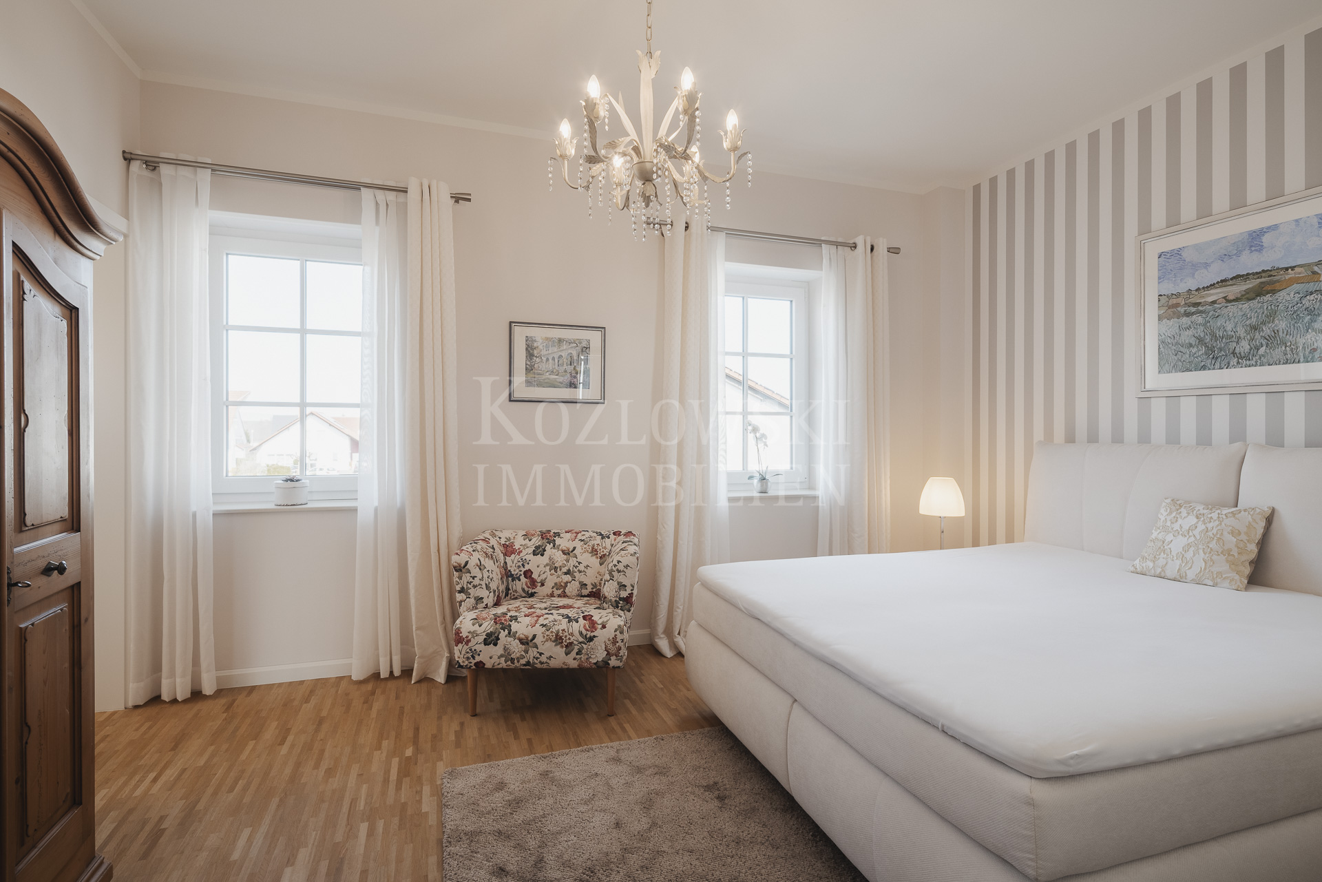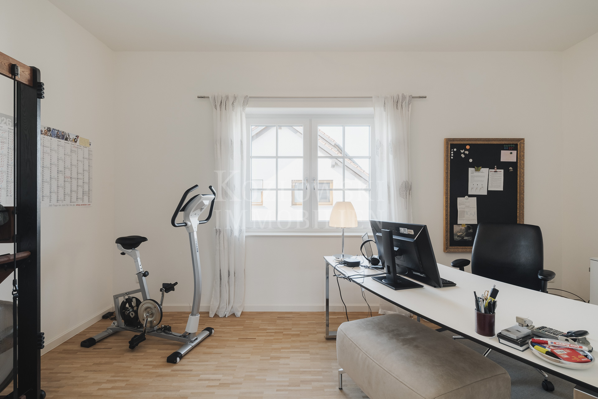 Abgerundet wird dieses exklusive Kaufangebot durch eine große Garage mit integriertem Werkstatt- und Lagerbereich, direktem Zugang ins Haus sowie in den Garten und zusätzlichem Stauraum im Dachboden.